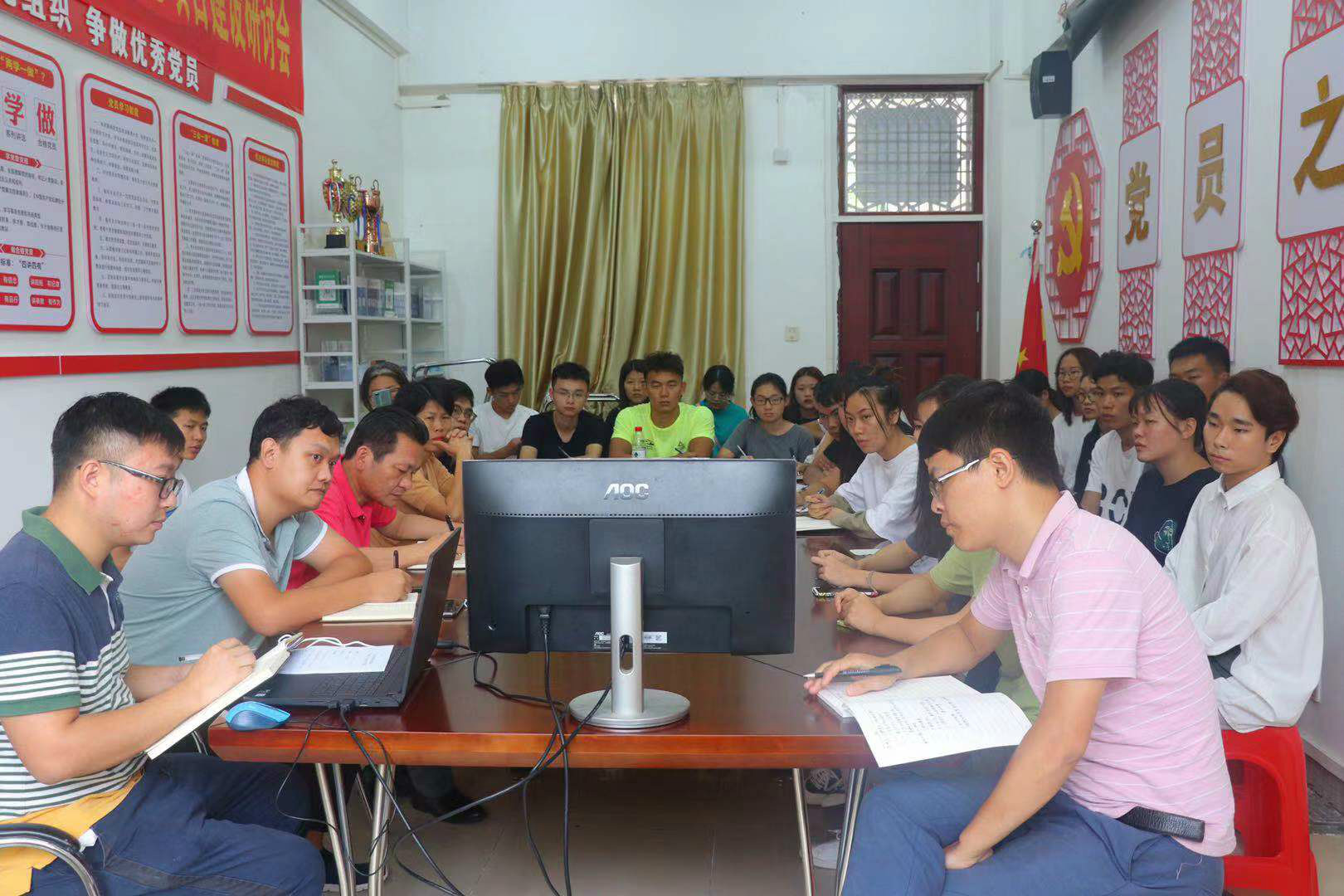 在交流讨论结束后,学生党支部书记王海云为大家上了一堂生动的党课。她要求全体党员和入党积极分子要守初心、担使命,找差距、抓落实,坚定理想信念,树立创新意识,补足精神之钙,把稳思想之舵。