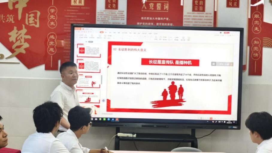 课中,党总支副书记邓小康以”长征精神“为主题,给即将踏上人生新征程的毕业生党员们进行理想信念教育。与各位毕业生党员回顾红军长征路,两年间,中国工农红军历经曲折,征服雪山,穿越草地,粉碎上百万敌军围追堵截,无数次取得战斗的胜利,诠释长征的伟大意义,讲到:中国共产党领导的红军长征取得了伟大胜利,由此改写了中国革命的历史进程,长征不只是艰辛的跋涉,更是精神的凝聚,长征精神始终鼓舞和激励着共产党人。寄语毕业生党员在今后的工作生活中,以长征精神内涵为精神路标,把全国人民和中华民族的根本利益看得高于一切,坚定革命的理想和信念,不怕任何艰难险阻,坚持独立自主、实事求是,一切从实际出发的精神,在民族复兴新征程上勇当先锋、争做表率。结合中央八项规定精神学习教育,邓小康副书记对毕业生党员的言行举止、工作态度、生活作风等方面都提出了明确的要求。