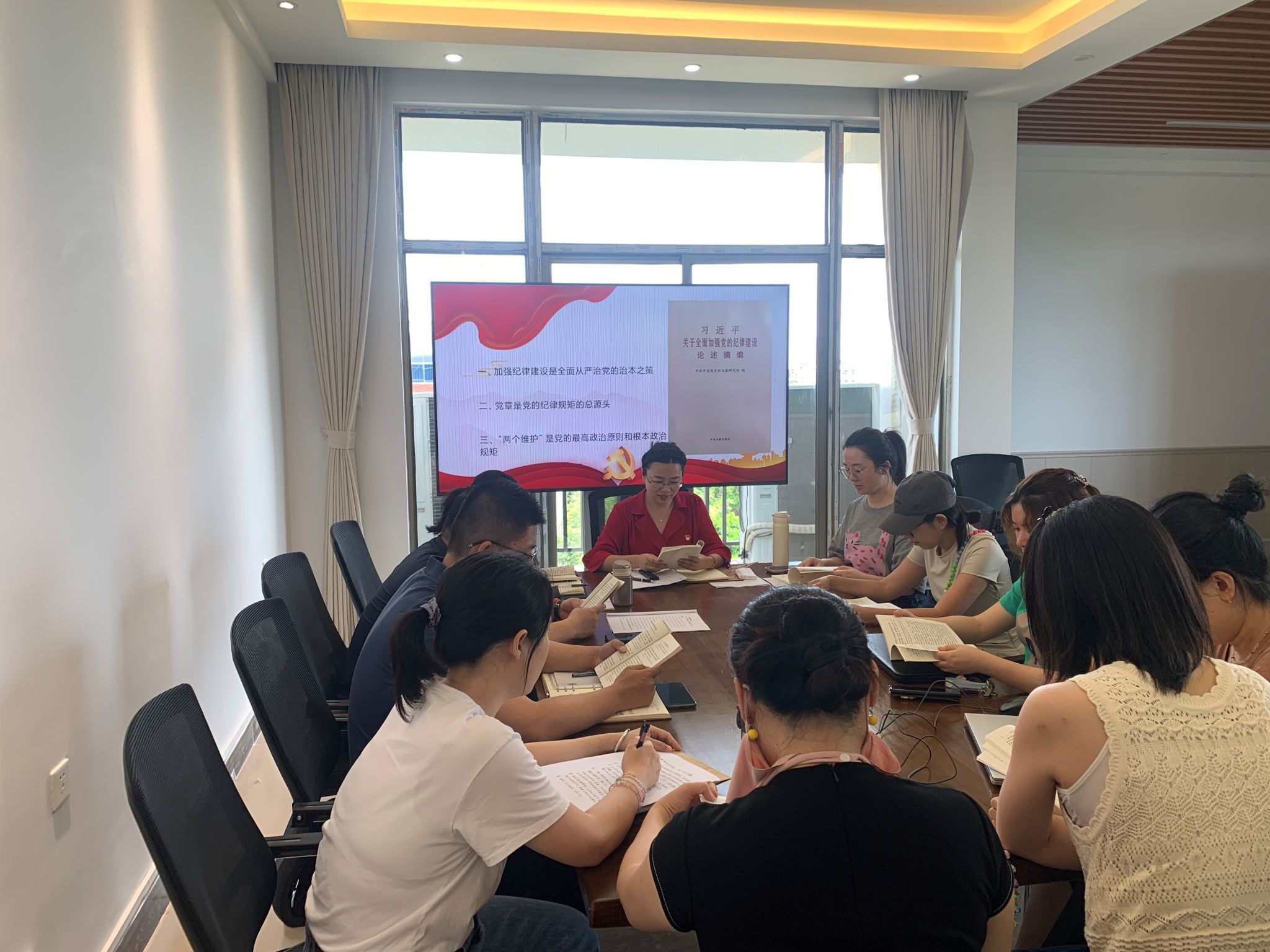 陈侦侦同志首先领读了《习近平关于全面加强党的纪律建设论述摘编》的第一部分。她结合学院实际,详细解读了习近平总书记关于党的纪律建设的重要思想,强调了加强党的纪律建设对于推动学院事业发展的重要意义。随后,徐浩同志和齐天俏同志分别领读了该论述摘编的第二、三部分,进一步丰富了学习内容,加深了大家对党的纪律建设的理解和认识。
