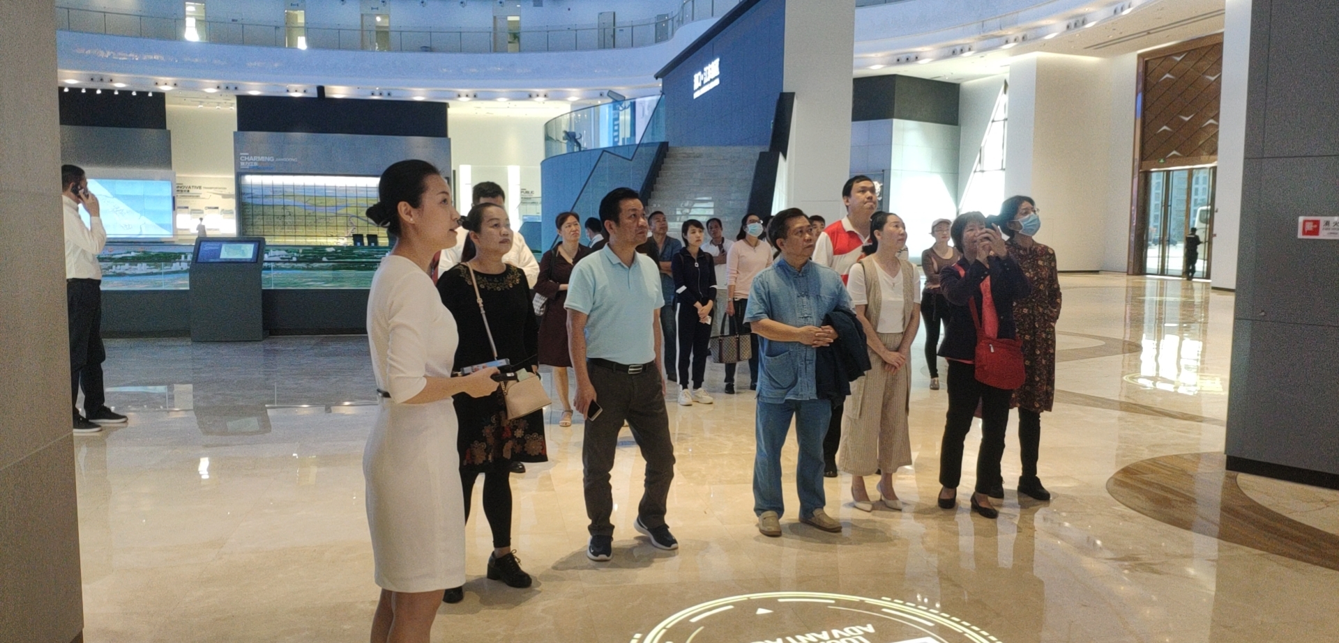 海口江东新区展示中心以“百川入海,未来向‘东’”为主题,展示区依据内容分为:“你好江东!共享大厅”、“先谋后动”展区、“总体规划”展区、“规划亮点”展区和“掌上乾坤”起步区五个部分,从政策支持、总体规划、详细设计、建设成果等各个方面展现海南自由贸易港海口江东新区的规划建设发展情况。参观过程中,大家认真听取讲解员的讲解,驻足观看,问询探知,交流讨论。在展馆中央的“总体规划”展区,海南经贸职业技术学院出现在江东新区全境沙盘模型中,位于国际高教科研组团区,大家备受鼓舞,充分认识到我校发展建设是江东新区的规划建设的重要组成部分,我们需要抓住这千载难逢的创新发展机遇,才能让学校面貌日新月异,才能真正助力海南自由贸易港建设。