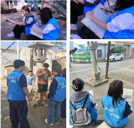 志愿者一早抵达社区进行分工协作,部分同学整理团扇、拓印模板、粘土陶罐等非遗物料,部分同学布置现场、摆放桌椅,为活动打造出独具韵味的传统文化场景。