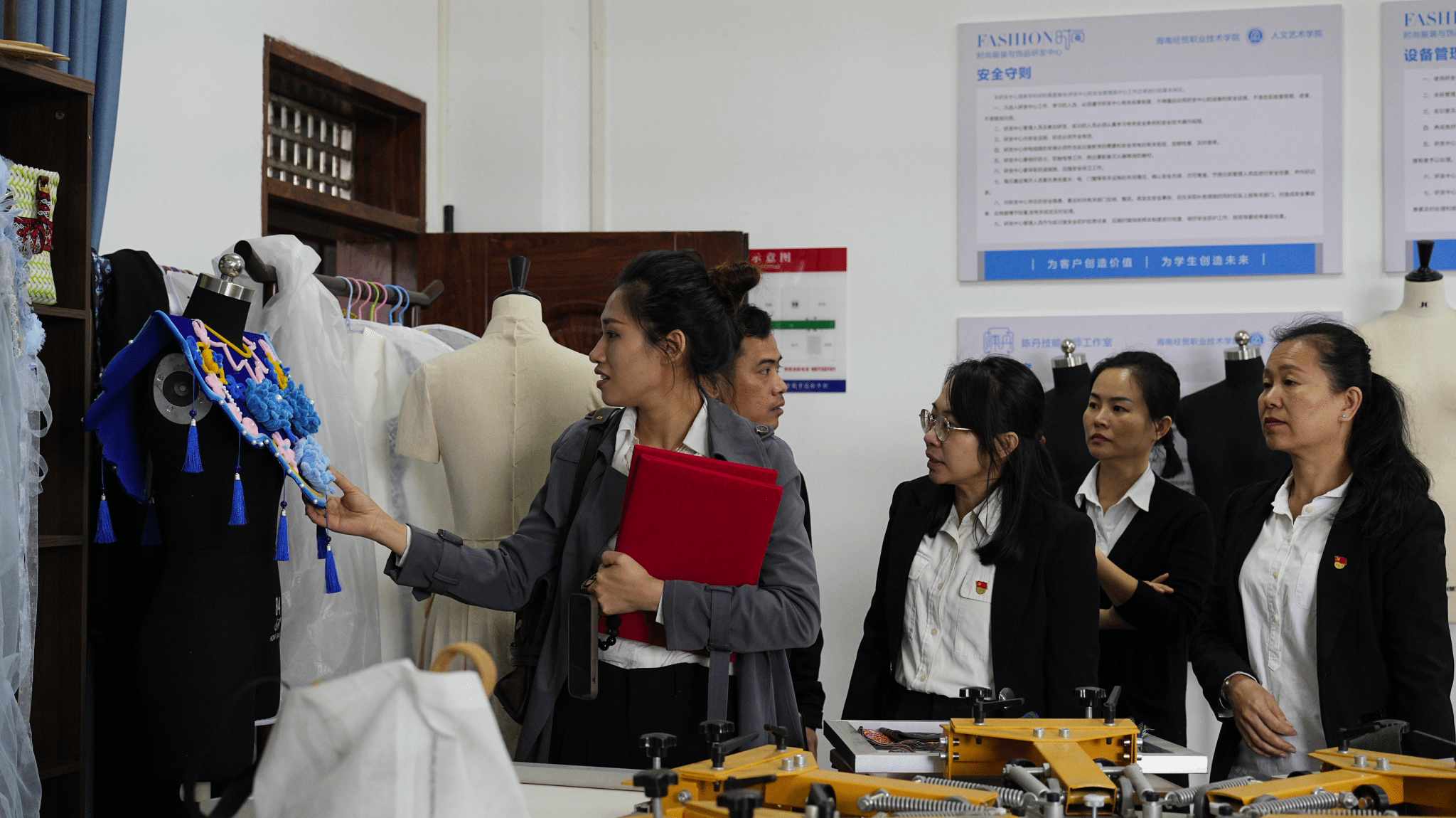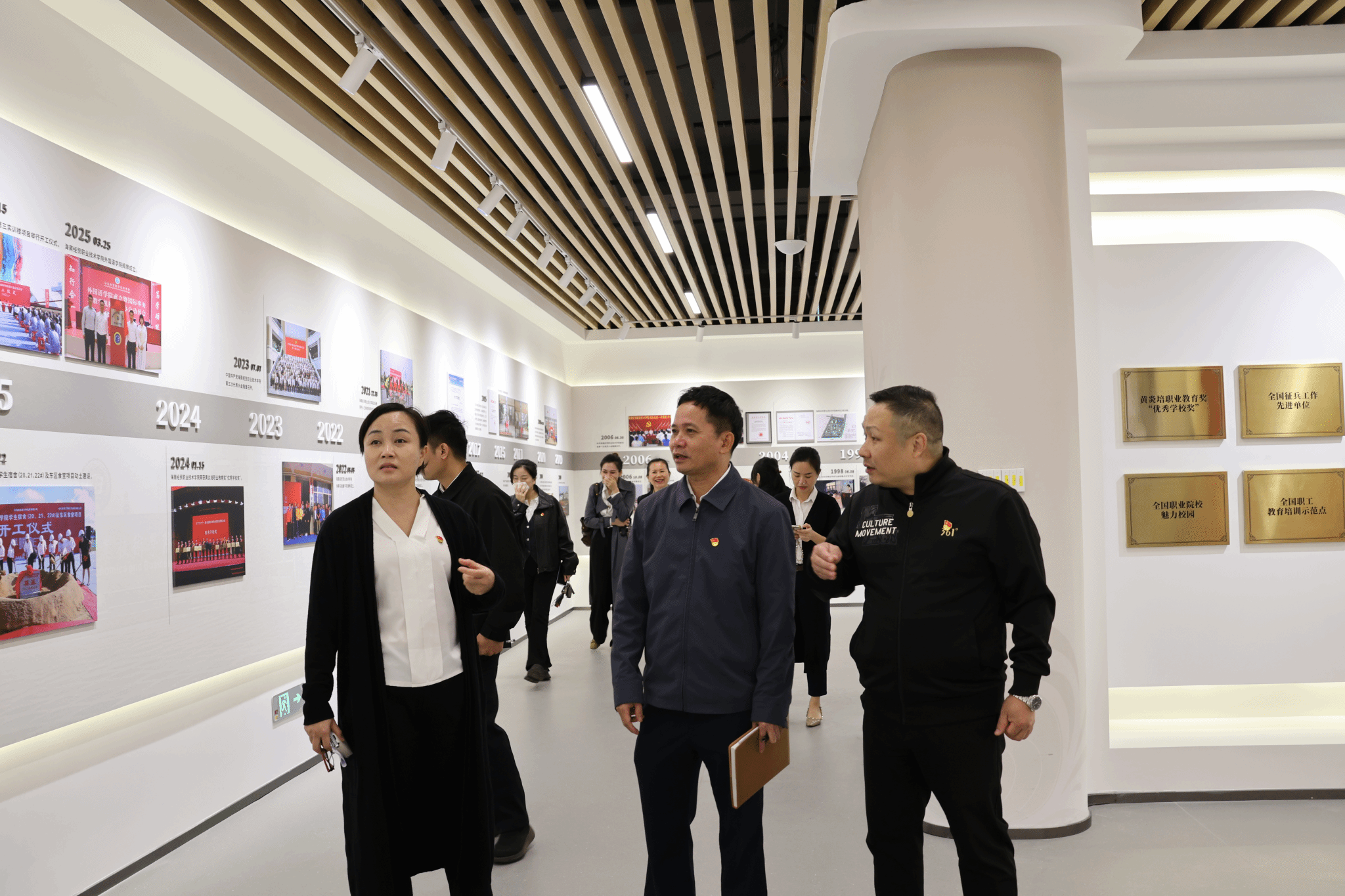 签约仪式后,海南省华侨商业学校艺术教学党支部一行实地参观了海南经贸职业技术学院太阳集团tyc5997专业实训室与校史馆。在实训室,参观人员详细了解了各类专业教学设备配置、实训课程开展情况;在校史馆,通过珍贵的史料文献与实物展品,深入感受了学校的办学历史、文化底蕴与育人成果。沉浸式的参观体验让双方对未来资源共享、合作育人充满期待。