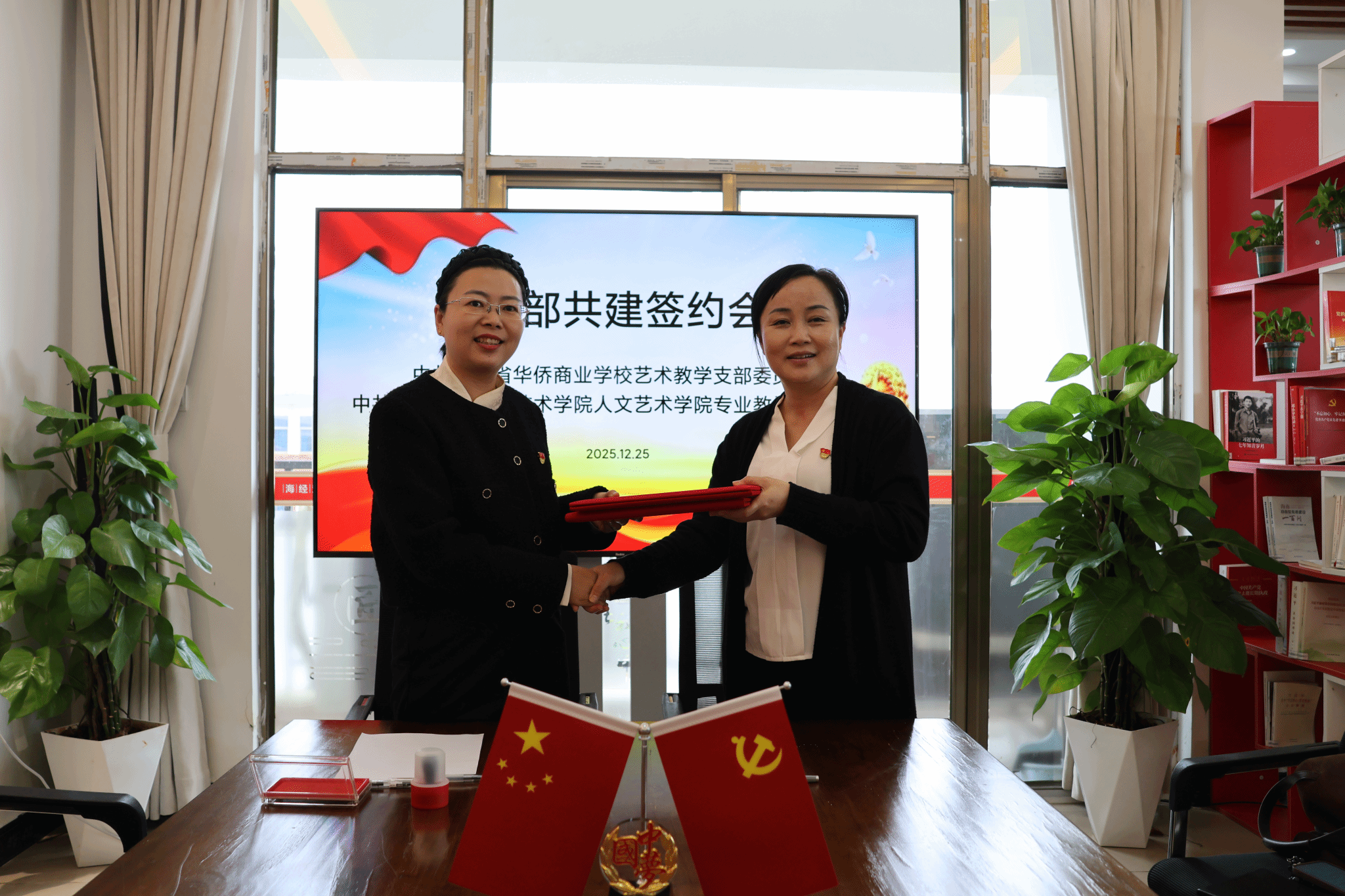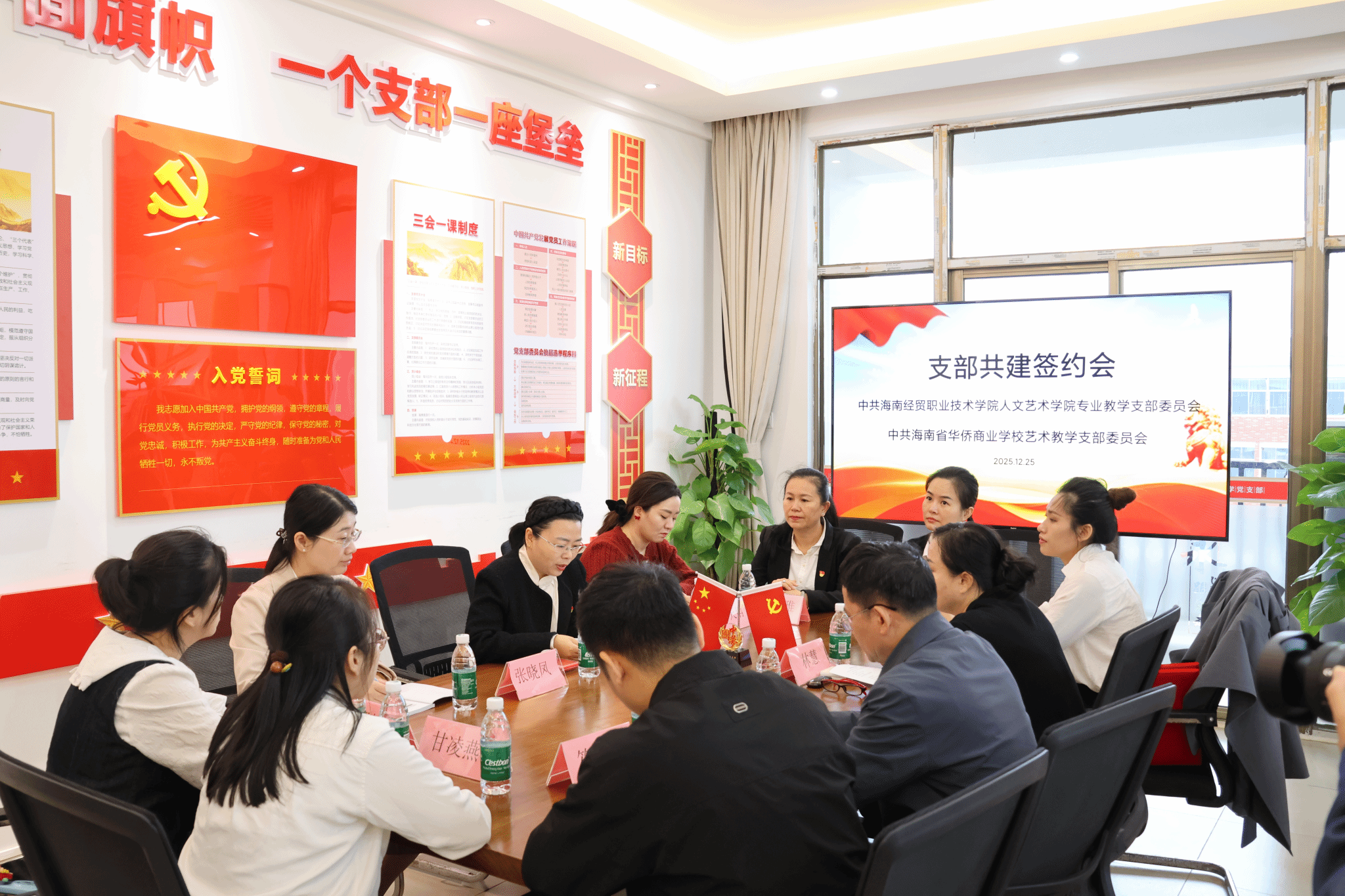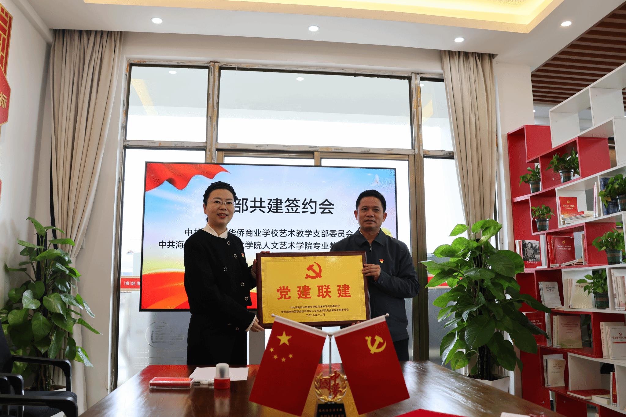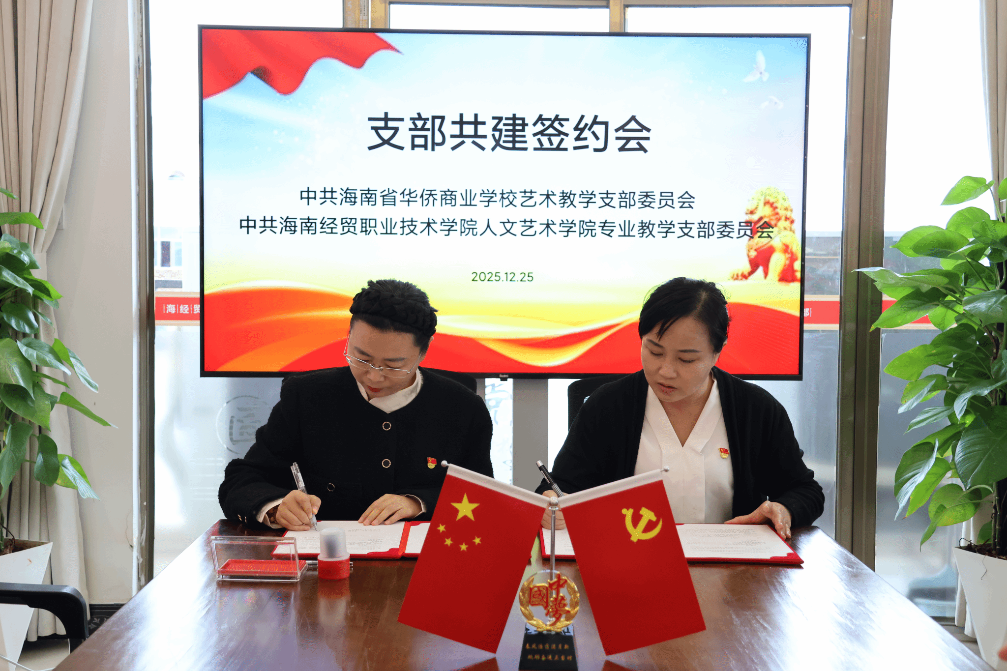 2025年12月25日,中共海南经贸职业技术学院太阳集团tyc5997专业教学支部委员会与中共海南省华侨商业学校艺术教学支部委员会党建结对共建签约仪式在海南经贸职业技术学院太阳集团tyc5997举行。此次活动以党建为纽带,搭建起两校艺术职业教育协同发展的坚实桥梁,标志着双方在深化党建与业务融合、共育技术技能人才方面迈出关键一步。