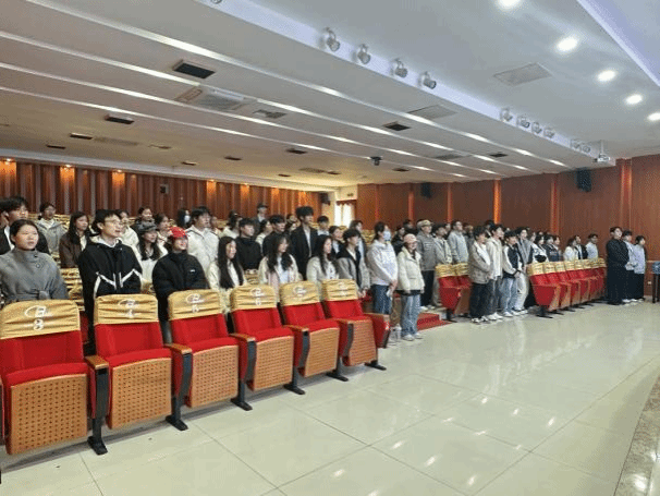 会议开始,全体人员齐唱团歌。同学们目光坚定、歌声嘹亮,鲜红座椅与青春身影相映成趣,尽显团学青年朝气蓬勃、积极向上的精神风貌,让初心与担当在歌声中凝聚,为大会开启了庄重热烈的篇章。