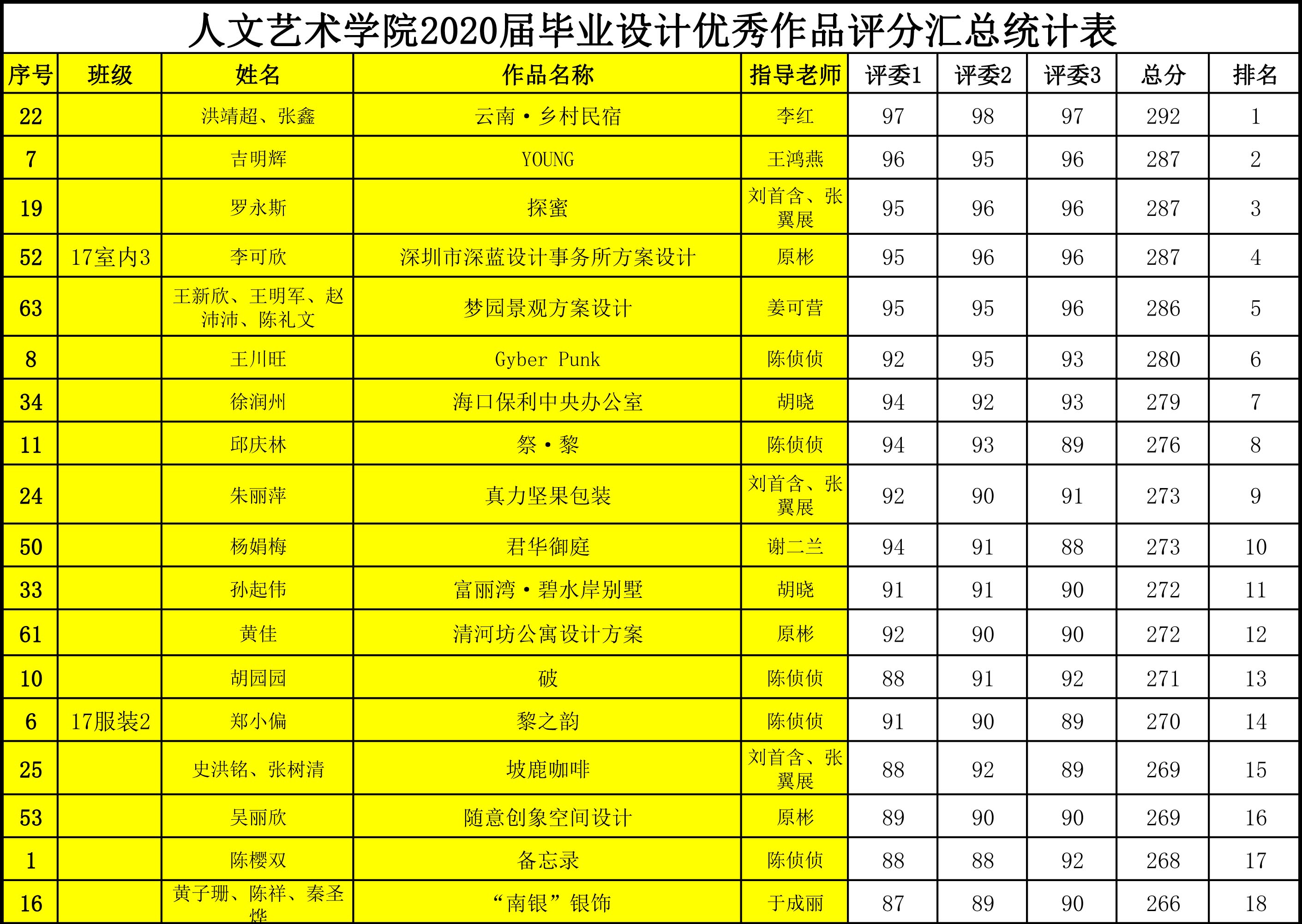 太阳集团tyc5997关于2020届毕业设计优秀作品评分汇总的公示