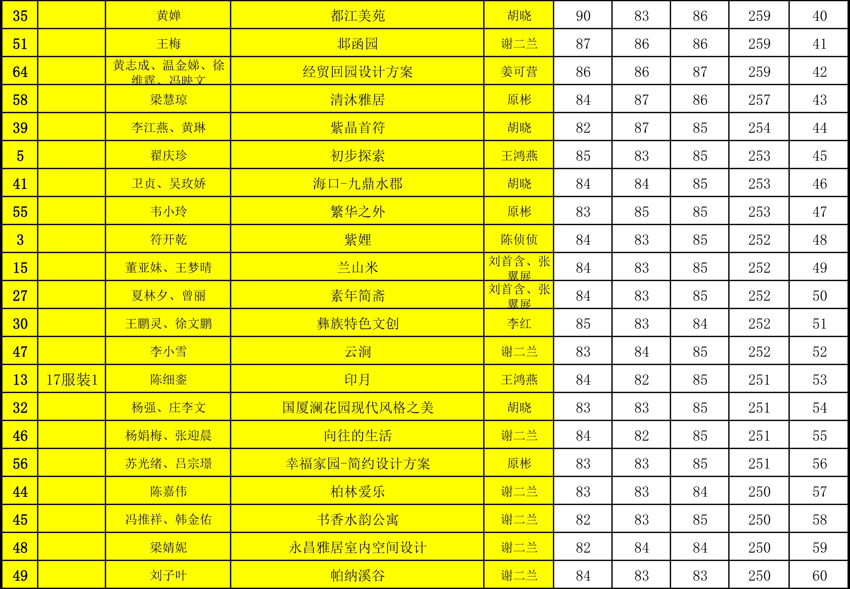 根据太阳集团tyc59972020届毕业设计展的有关要求,我院组织校内外专家对2020届毕业设计作品进行了评分,现将评分结果公示如下: