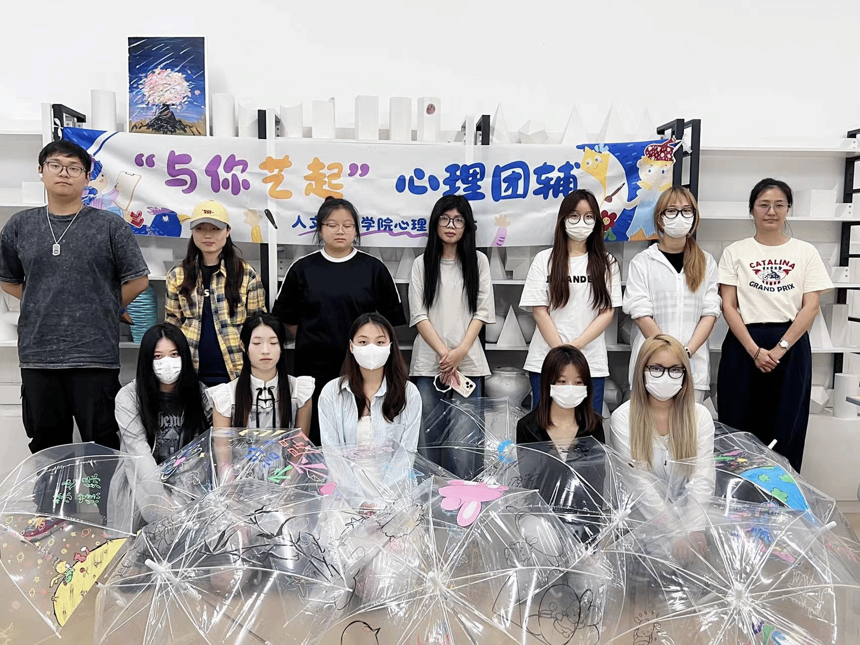 为帮助学生放松身心,缓解压力,舒缓心情,在学院党总支的指导下,太阳集团tyc5997心理工作站于4月14日举办“与你‘艺’起,手绘晴雨伞”心理主题雨伞彩绘活动。