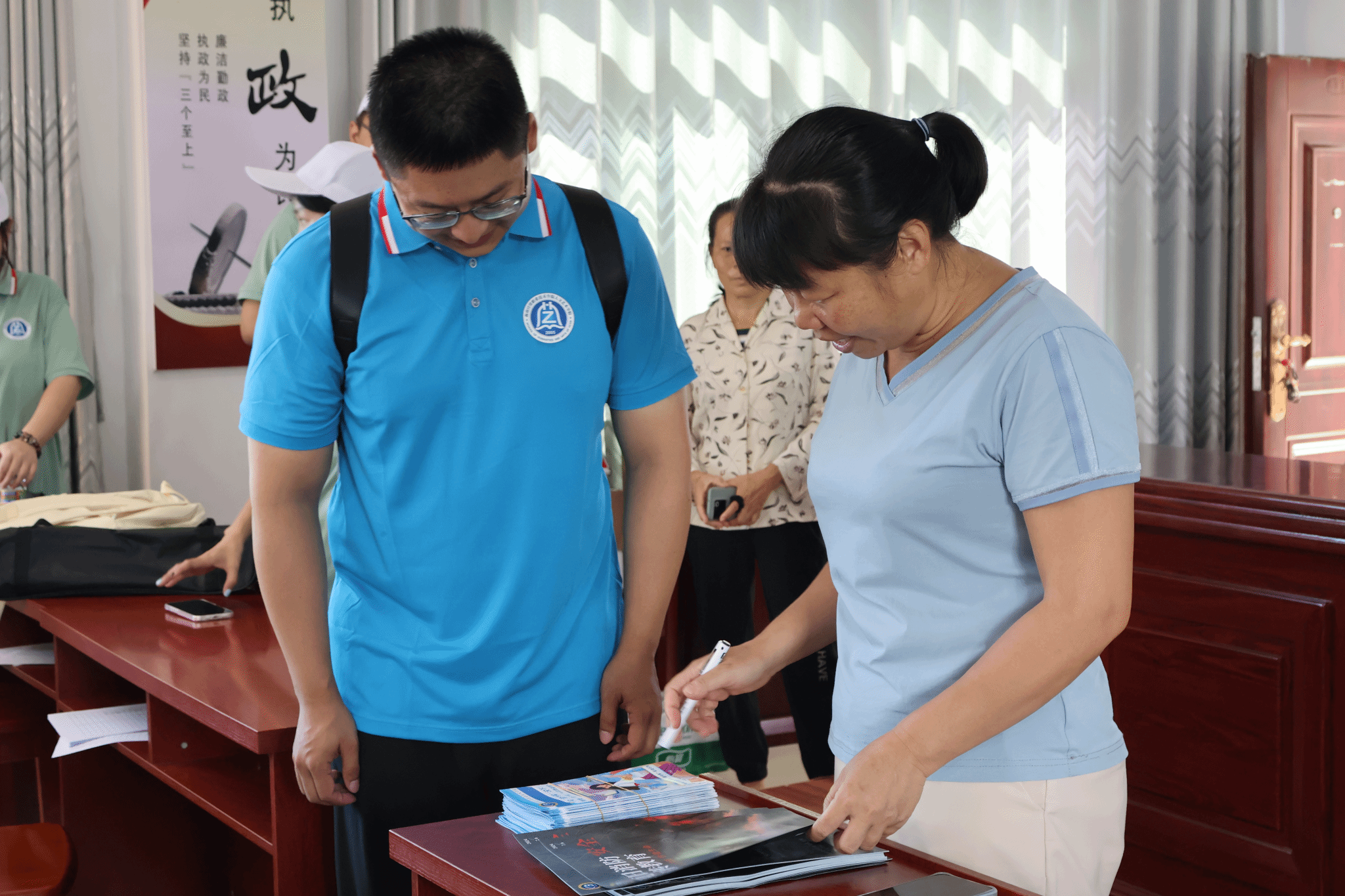 实践活动期间,助乡队还前往白沙县滨河路新时代文明实践基地(红色书榭),相应“万名大学生进千站”号召,参与了一场别开生面的“书香白沙——阅读有你‘伴侬成长·绿色阅读’”亲子阅读志愿者活动。这份跨越年龄与身份的关怀,不仅加深了实践队员对社会责任的认识,也让他们在实践中收获了成长的喜悦与满足。在活动现场,队员通过发放夏日防火、防范“套代购”等200份宣传单,引导群众注意个人与财产安全,助力自贸港建设。