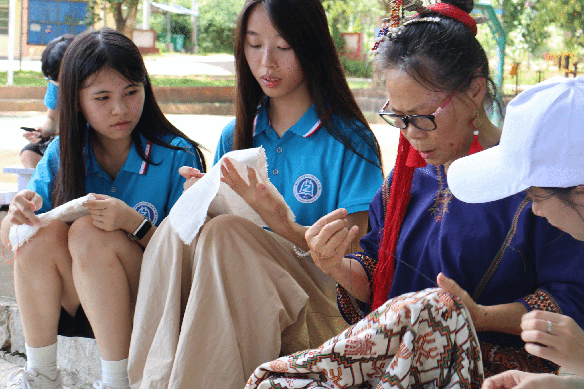 7月6日-7月8日,助乡队深入海南省白沙黎族自治县牙叉镇白沙村委会下辖村落,调研地域景观要素,探寻乡村环境痛点,并与“承续·匠心”实践队一道,拜访国家级非遗传承人王瑞妹老师。在这片以山川与茶树为基底、黎锦与文化为灵魂的土地上,队员们全身心体会了地域景观的魅力,也亲眼见证了世界非遗黎族纺染织绣精湛的技艺。