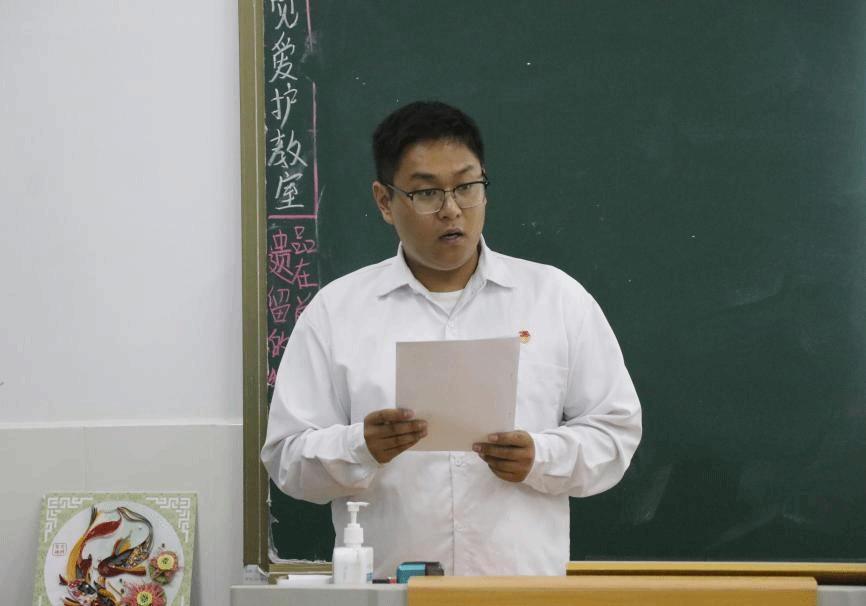 太阳集团tyc5997团总支负责人雷走宏在宣读文件