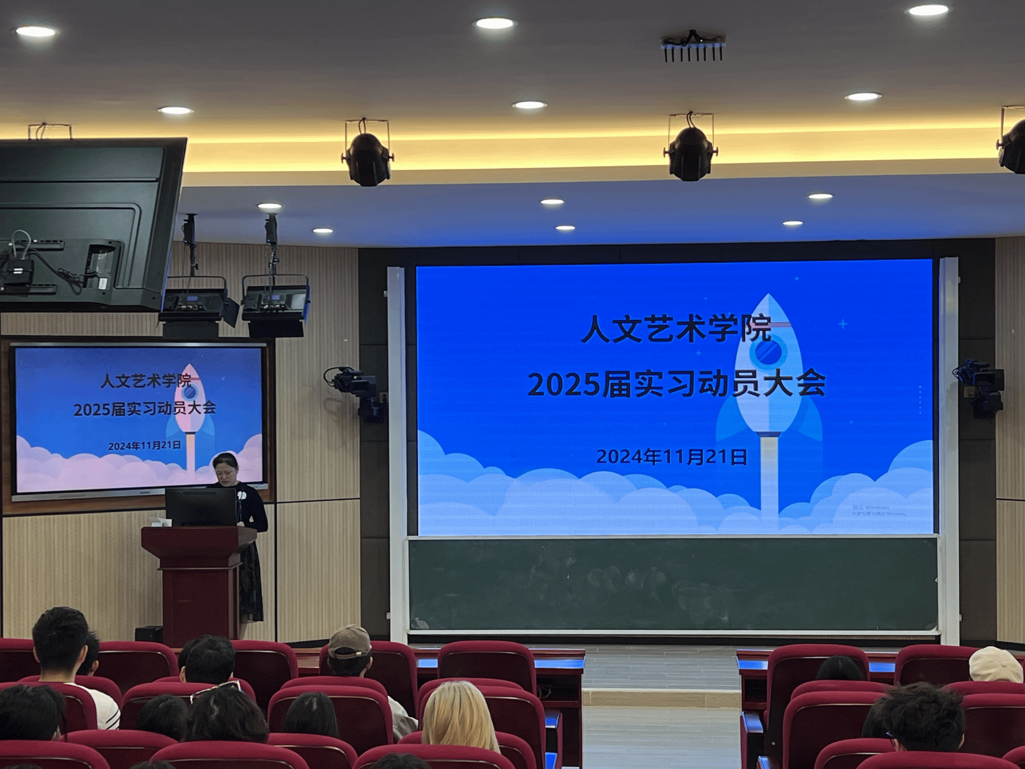 2024年11月21日,太阳集团tyc5997召开2025届毕业生实习动员会,教务办、学工办、各专业负责人、实习指导老师、全体毕业生参加动员会,由吴丽敏副院长主持会议。