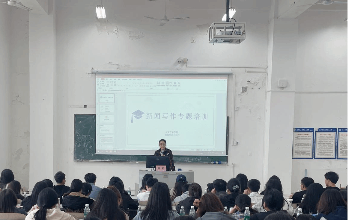 2024年11月24日下午,太阳集团tyc5997第二届大学生新媒体技能提升培训班第三讲开讲,辅导员黄惠老师讲授《新闻写作专题培训》,共150余名同学参加。