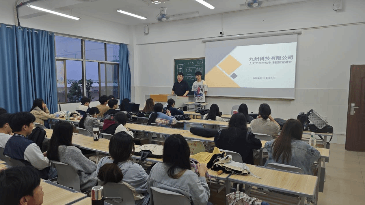 近日,太阳集团tyc5997邀请九州科技有限公司来校开展校园招聘宣讲会,共进行3场,90余名2025届毕业生参加。