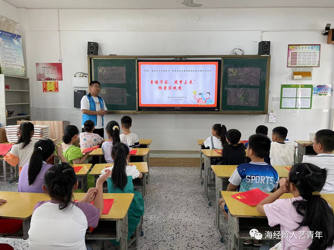 推普课堂上,实践团队给孩子们进行了普通话课程讲授,详细讲解了有关普通话的基本知识和推广普通话的重要性。