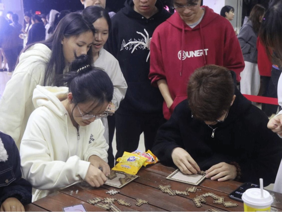 活动期间,现场张灯结彩、人潮涌动,热闹非凡。我院游戏区域精彩纷呈,“你画我猜”考验团队协作,在智慧和默契的碰撞中感受传统文化的魅力;飞镖的较量,凝神屏气,紧张刺激;套圈现场气氛最为热烈,参与者们全神贯注、瞄准目标,每一次套中礼品,现场响起欢呼掌声,每个人的脸上都洋溢着青春的笑容。