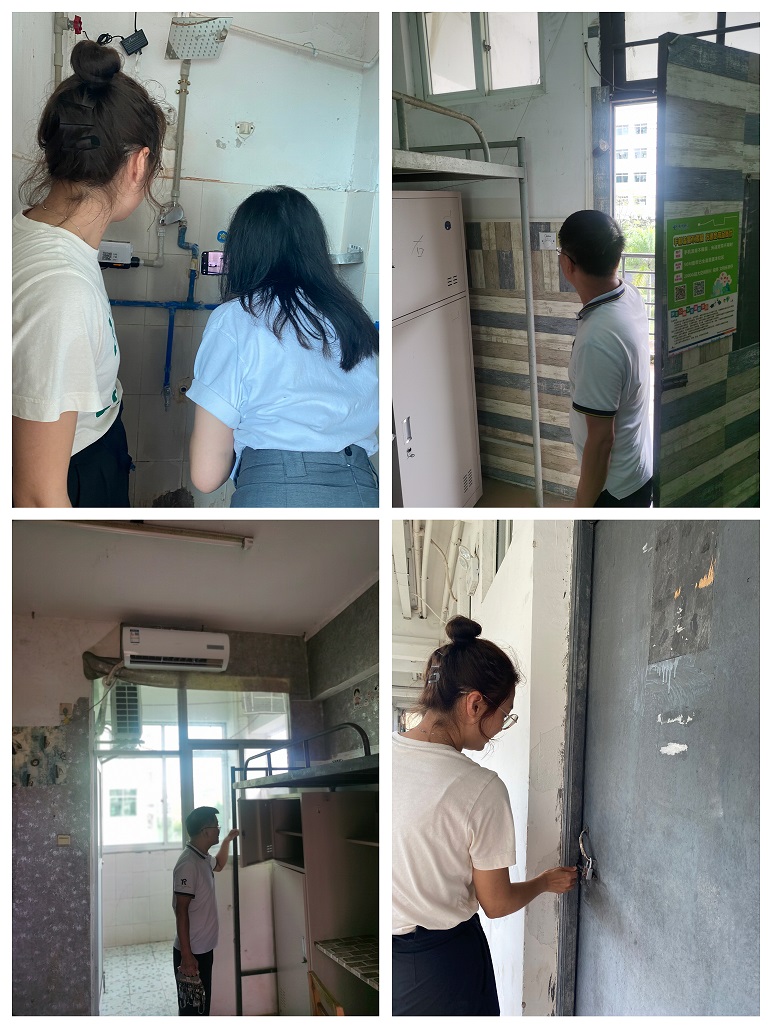 本次检查目的在于及时发现问题、解决问题,保障宿舍环境卫生、安全,为新生营造温馨舒适的住宿氛围。老师们细致地对宿舍的卫生情况、基础配置、整体环境进行检查;认真查看门窗桌椅、空调 等设施是否存在损坏;并重点排查了宿舍的安全隐患问题,例如水电开关是否正常、床位排查、床架焊接等,切实保障迎新工作稳步开展。