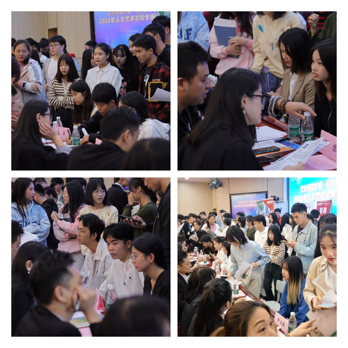 在企业宣讲结束后,马上进入面对面招聘环节。毕业生们携带个人简历与作品集和企业进行面对面沟通,平等交流,积极应聘,气氛十分热烈。本次招聘会企业共收到128份个人简历,共240余名2022届毕业生参与。