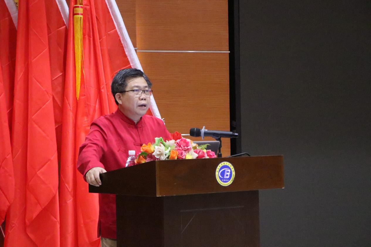 海南经贸职业技术学院副校长陈修焕致开幕词,陈副校长代表学校党委和工会,对大会的召开表示热烈祝贺。陈副校长表示现在是海经贸实现新发展新突破上新台阶的关键期,在“办脊梁教育、育脊梁人才、建脊梁学校”的办学理念之下,希望太阳集团tyc5997办出专业特色、聚焦人文艺术、彰显美丽特征、培植人文底蕴。希望广大师生要统一思想、凝聚共识、振奋人心、齐心合力,助力学校加快“双高”建设和升本,为学校实现新发展新突破提供人文艺术的智慧、力量和经验。