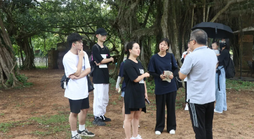 随后的行程中,设计团队来到了美榔村,参观了著名的地标建筑——美榔双塔。塔上造型各异、栩栩如生的浮雕生动反映了元朝人们审美的流行趋势,也让成员们了解到七百多年前海南的风土文化,为之后开展文创产品设计提供了许多创作的灵感。