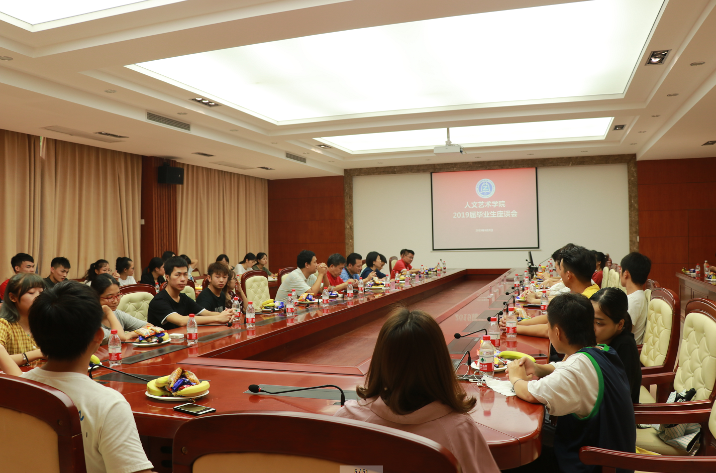 可口的水果、好吃的零食摆满桌面,本次座谈会在轻松愉悦的氛围中开展。座谈会上,毕业生代表们从专业学习、志愿服务、学生干部工作、专升本经验等四个方面进行了发言分享,同时,在互动环节中,通过播放轻松愉悦的毕业生访谈视频,活跃了现场气氛。17、18级学生代表也询问了16级的学长学姐们关于一些学习、工作、生活等方面的问题,毕业生们结合自身经历的同时也畅谈了对大学生活的感悟,总结在校求学的丰硕收获,表达对母校的眷恋之情,展望对未来的规划与憧憬。