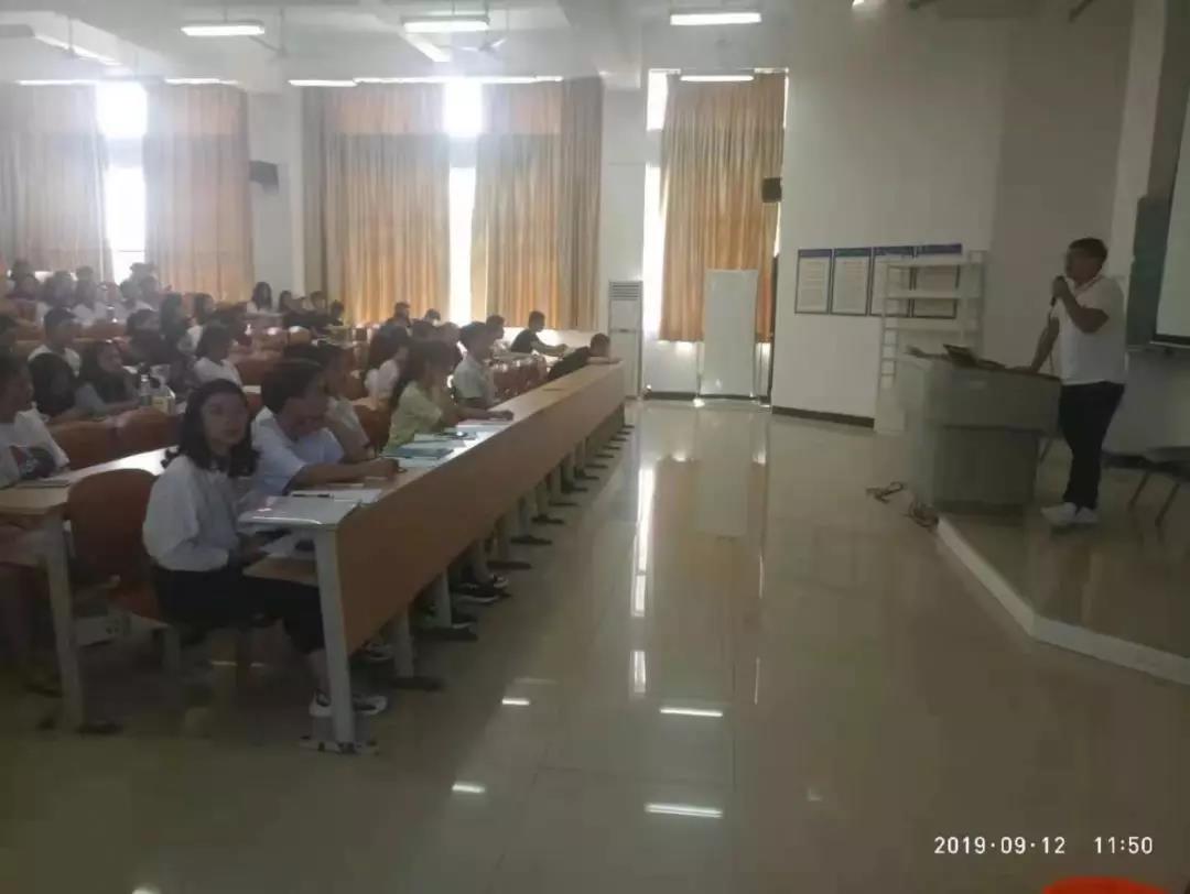 2019年9月12日中午12时,我院团总支徐超老师组织参与本次新生接待工作共108名志愿者进行了新生接待志愿服务培训动员会,太阳集团tyc5997学工办主任王海云老师出席会议。
