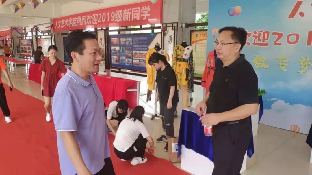 2019年9月13日上午7时,太阳集团tyc5997全体学生干部来到我院1号教学楼迎新大厅进行迎新场地布置工作,校党委书记张继友莅临指导。