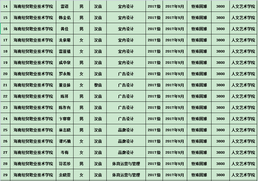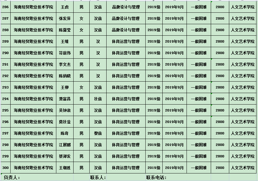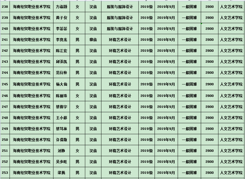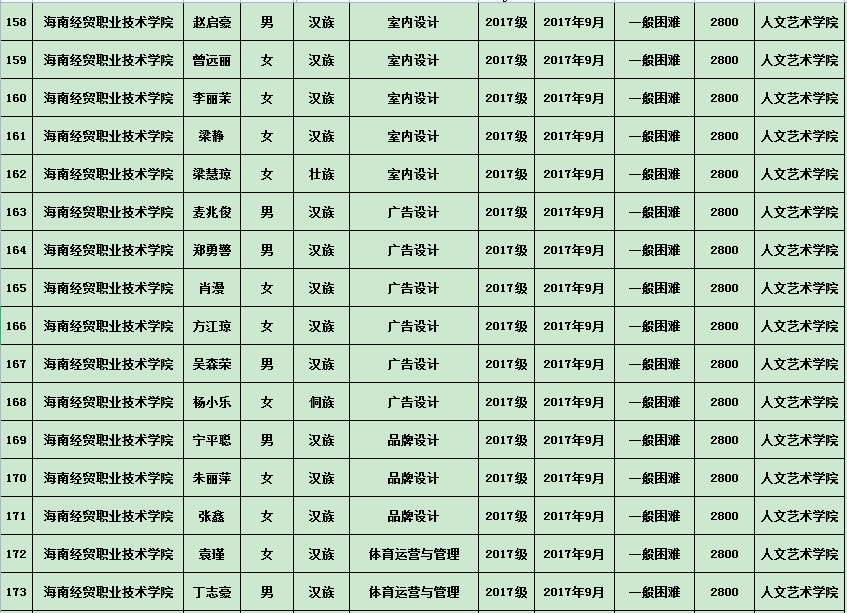 为了促进我院学生全面发展,鼓励学生刻苦学习,奋发向上,促进校风学风建设,我院根据《海南经贸职业技术学院“国家励志奖学金”管理实施细则》(2019版)、《海南经贸职业技术学院“海南省优秀贫困大学生奖学金”管理实施细则》和《海南经贸职业技术学院“国家助学金”管理实施细则》(2019版)评定办法,本着公平、公正、公开、民主的原则,现进行公示。