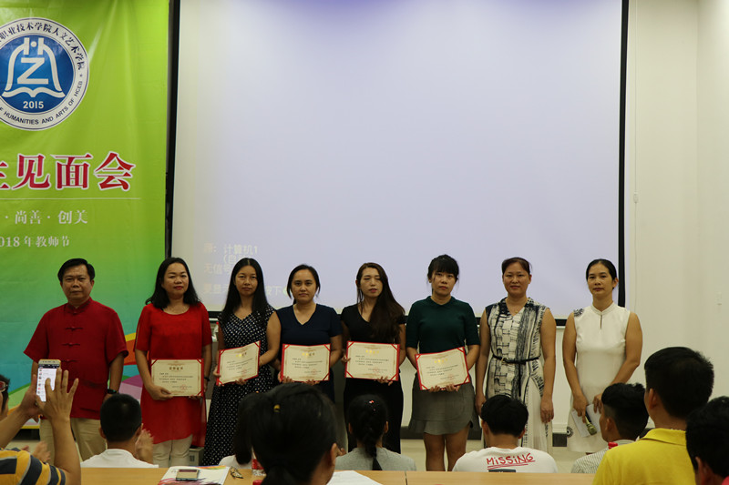 会议还表彰了2017-2018学年度我院优秀指导教师并颁发证书。优秀指导教师代表张翼展、优秀毕业生马文涛、新生代表邝嘉雨分别在会上作了发言。