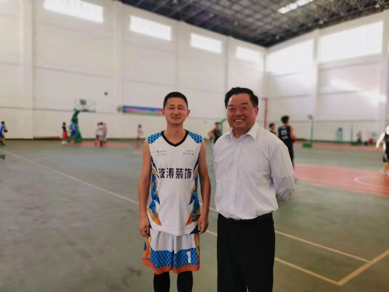 我校男子篮球队与波涛装饰公司组织开展了篮球友谊赛交流活动。
