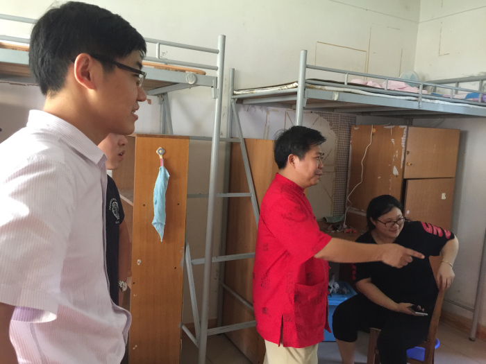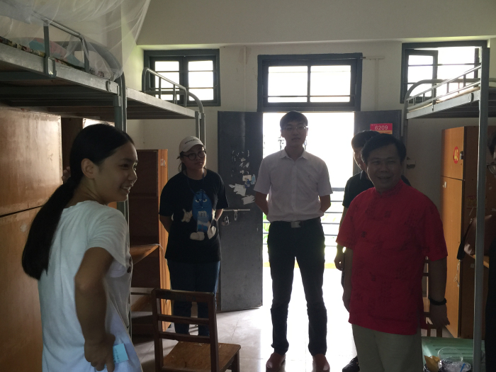 走访中,许院长、田书记一行对新生的情况进行了深入的了解,每进一个宿舍就询问他们刚来到学校的感受,向他们简单地介绍学校的情况,叮嘱大家要尽快熟悉校园环境,在学校、寝室要处理好与同学之间的关系,并亲切地询问他们是否适应学校的居住环境与饮食,提醒他们要保管好自己的财物,要注意宿舍用电安全,并且嘱咐新生要认真学习知识,积极培养兴趣爱好充实大学生活。