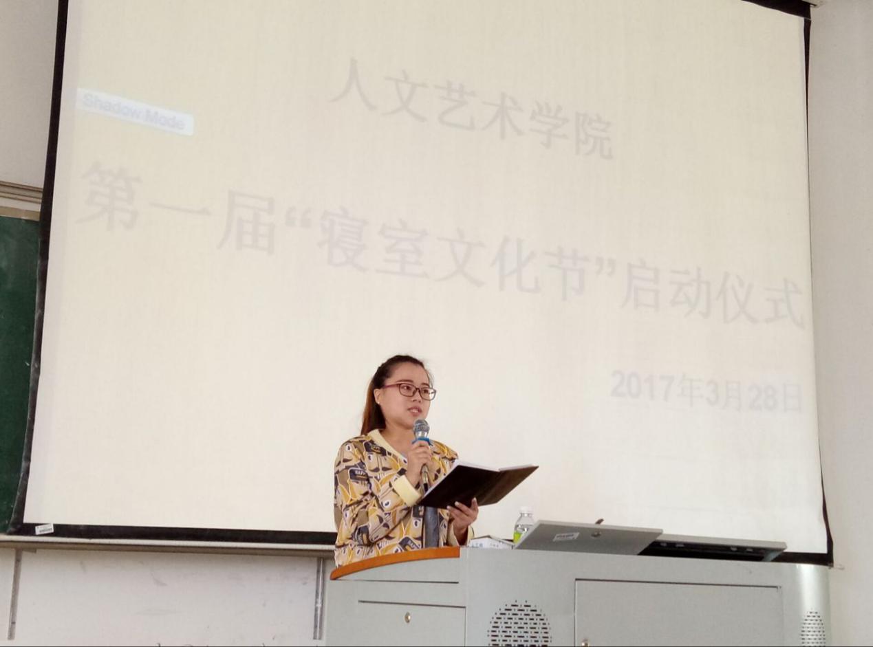 会上,黄慧娟书记就建设寝室文化节活动提出以下主张:寝室文化节要做到弘扬传统文化,要理解文化的含义。让寝室变成每个学生的精神图腾同时要住得舒适、变得明亮。同时也减少病毒滋生感染,并预祝寝室文化节活动取得硕果。接下来团总支负责人牛玉老师对寝室文化节展开工作部署,对每个学生的寝室评比进行打分,对寝室进行装潢体现传统文化,并在寝室文化节闭幕式进行颁奖。最后,学生会主席张致博宣读倡议书,并对学生提出倡议:文明修身、勤于打扫、严于律己,未雨绸缪。