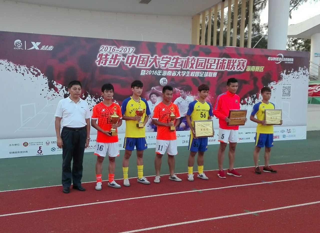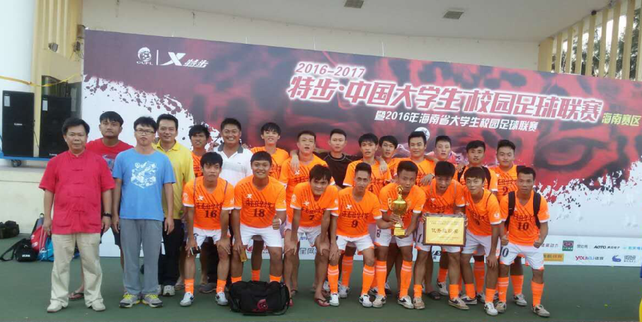11月15日,2016年度中国大学生校园足球联赛海南赛区(高职组)决赛在海南大学鸣哨开战,我校男子足球队与海南职业学院队展开激烈角逐,争夺冠军,面对小组赛我们曾经3:1战胜过的对手,我们志在必得,开场后攻势很盛,多次威胁对方大门,可惜运气欠佳,两次将球击中门柱,而对手面对我们的凌利进攻,一味龟缩防守,在观众的阵阵喝彩声中,这场精彩有余的决赛在90分钟内以0:0结束,在最后的点球大战中,我队以3:2顽强战胜对手,夺得冠军,这也是我校队连续六年蝉联省大学生足球联赛(高职组)冠军,再次获得唯一代表我省参加南区决赛资格。