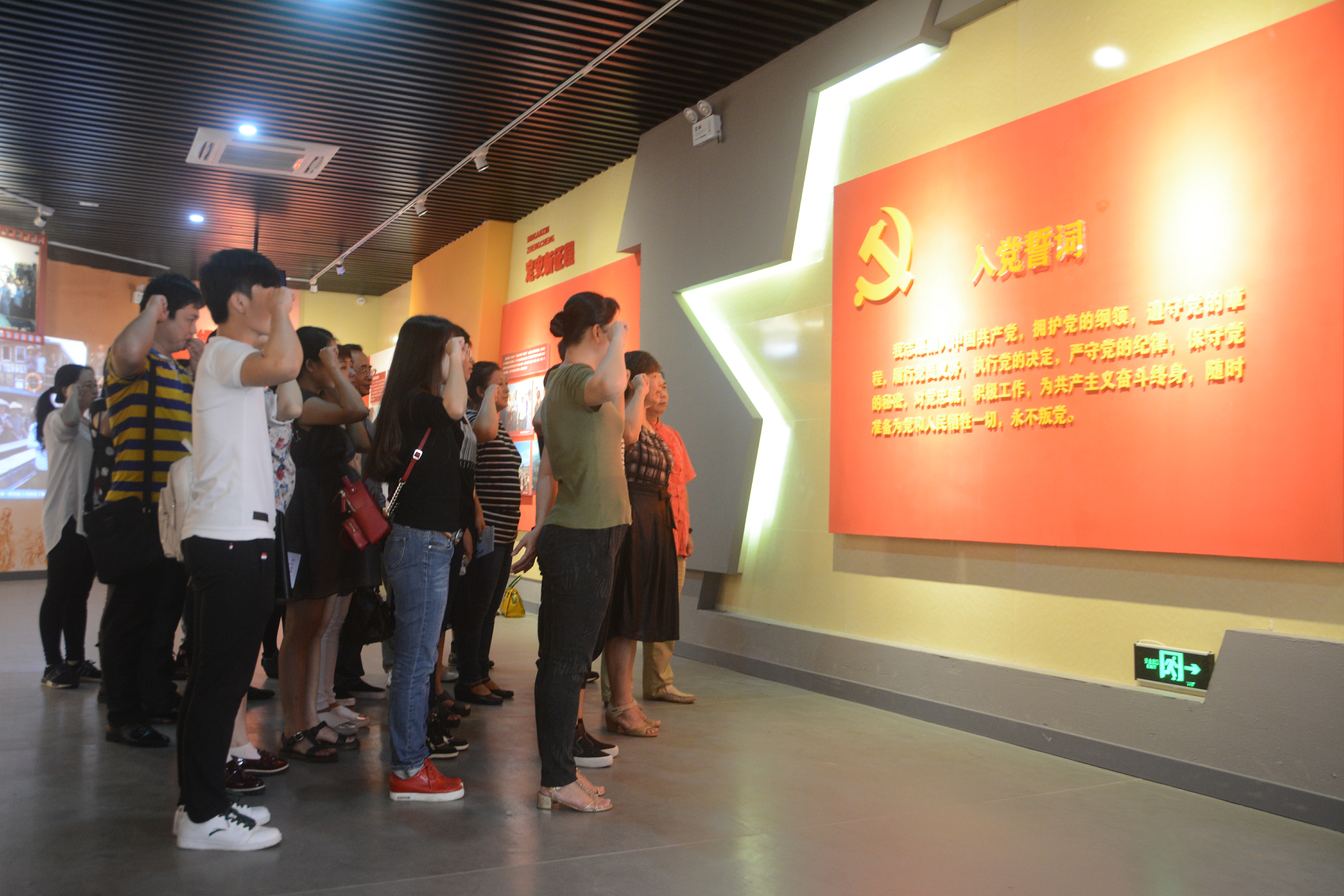 在聆听可歌可泣的革命故事、见证革命先烈们艰苦卓绝斗争的革命遗址后,在庄严的党旗下,全体党员同志们在黄慧娟书记的领读下,重温入党誓词……