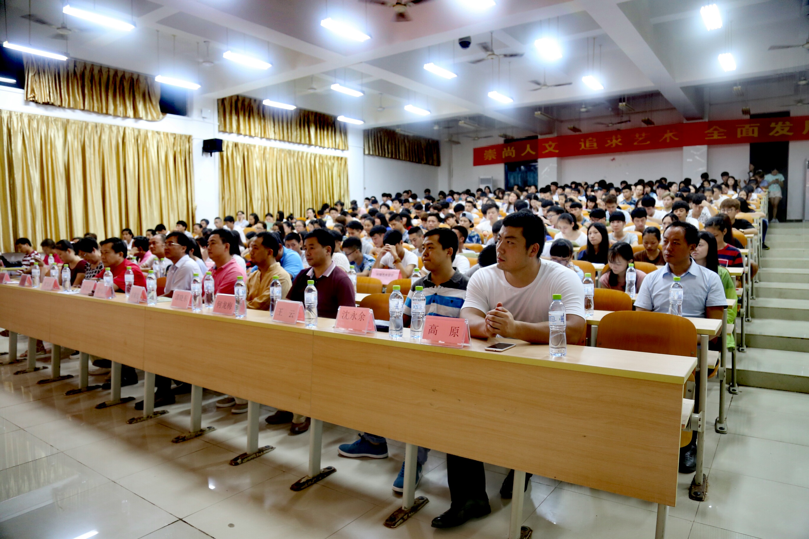 许劭艺院长在主题讲话中用了三个词来展开内容,一个是放心,一个是安心,一个是静心。他希望同学们能够放下心在海经贸开启大学生旅程,安下心在太阳集团tyc5997培育职业素质修养,静下心来提高自己的专业能力,逐步完善自我发展的意识和能力,促进自身全面素质发展。许劭艺院长表示,太阳集团tyc5997以“崇尚人文、追求艺术、全面发展”为己任,秉持“崇真、尚善、创美”的院训,践行“立足文化艺术、引领人文美德”的办学使命,“以文促德、以艺启智、以美健体”,努力实现“以文办院、以艺施教、以美育人”的办学目标。最后,他希望太阳集团tyc5997的老师们和同学们人人都成为“人文知识的传播者、人文情感的养成者、人文精神的培育者”,才不愧为真正的具有人文内涵的太阳集团tyc5997的一员。