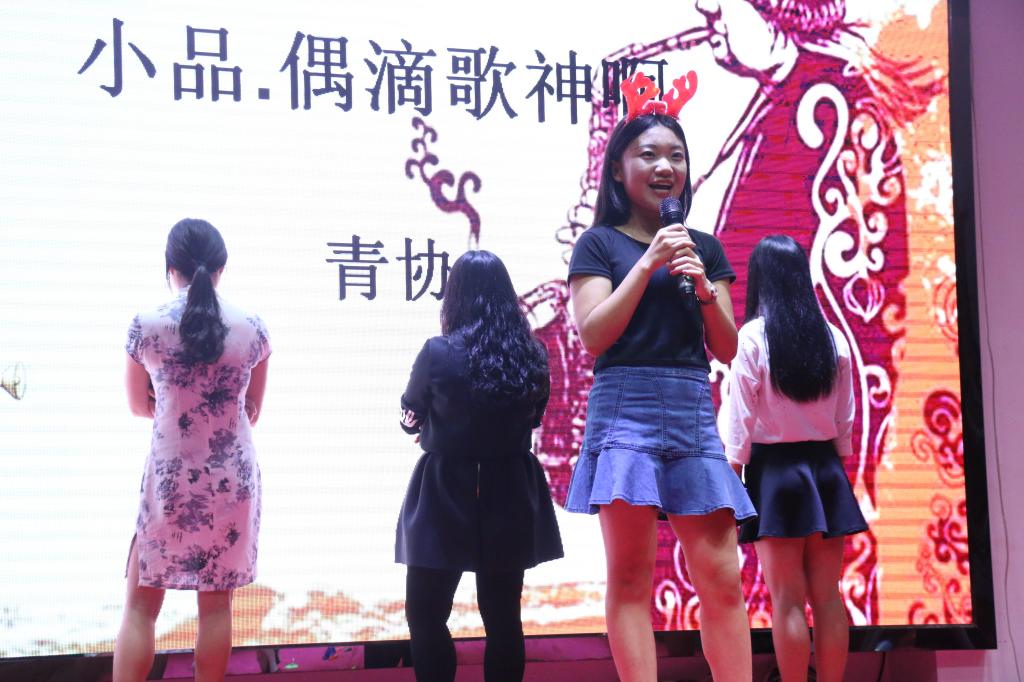 晚会首先由太阳集团tyc5997许劭艺书记致开幕词,书记的致辞幽默风趣,表达了对同学们的殷殷期待,引得掌声片片。晚会现场布置温馨,元旦的夜晚没有家人没有汤圆,也让人觉得内心暖暖。表演者和主持人与观众互动频繁,这场景温馨的不像是晚会,更像是群居聊天,教室不大,但正是这样的拥挤拉近了心和心的距离,同学们坐在一起,聊着杂七杂八,看的嘻嘻哈哈,熟络的像相识多年的朋友。