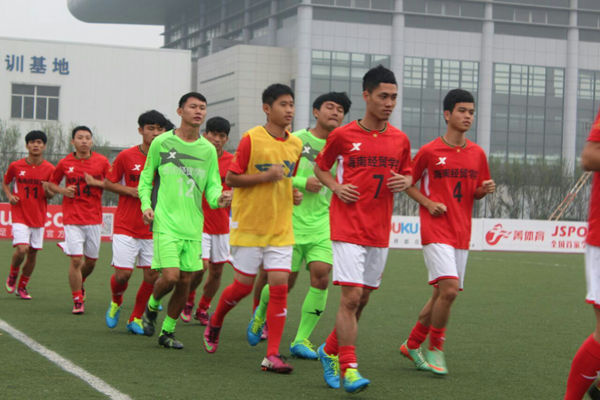 以我部领导、教师为领队和教练员班底的我院男子足球队代表海南省参加2014-2015“特步”中国大学生校园足球联赛(高职组)南区比赛,来自全国12个省(市、自治区)的13支代表球队汇聚扬州工业职业技术学院。今天,我校男子足球队以小组第一名出线,挺进大足赛南区四强,杀入全国八强,稳获参加全国总决赛资格。这是海南大学生足球队首次获得参加全国大足赛高职组总决赛的入场券。