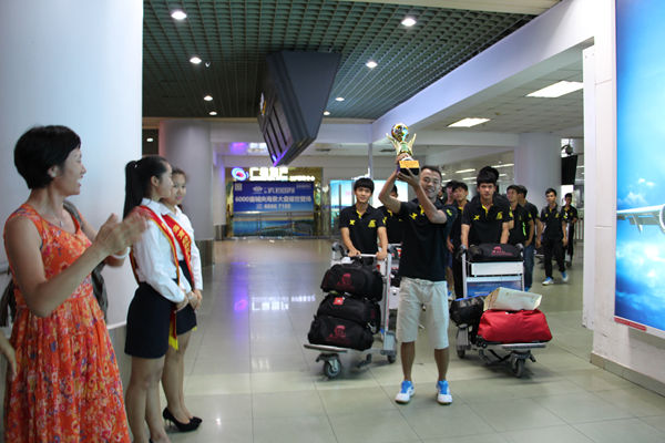 下午5时许,徐畅副书记以及公共教学部主要负责人来到美兰机场,迎接从西宁返程的足球队员。当队员们坐着校车缓缓驶入校园,一个巨大的惊喜在等待着他们:张继友书记以及100多位同学为他们举行了简短而热烈的欢迎仪式。大家高举着横幅,挥舞着彩球,欢呼着,跳跃着,向英雄们献上彩带。在同学们的掌声和欢呼声中,张继友书记代表全校师生对载誉归来的校足球队表示热烈祝贺,并与领队赵少雄、教练员及每位足球健儿一一握手,感谢他们的艰辛付出。张书记对足球队的杰出表现给予了高度评价。他说,我校足球队获得了大足赛季军,创造了海南省高校足球队参加全国大赛的最好成绩;队员们在比赛中发扬了顽强拼搏、奋勇争先的精神,是学校的骄傲,是海南的骄傲!他希望队员们继续保持昂扬的斗志和良好的状态,发挥好榜样作用,带动更多人参与到足球运动中。