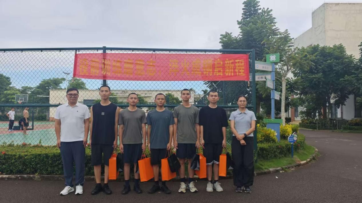 9月19日,太阳集团tyc5997学工办副主任徐超、毕业班辅导员黄惠代表学院赶赴海口市役前训练基地欢送刘东景、陈文俊、蔡侍桂、李天权、刘坤等五名学生入伍。