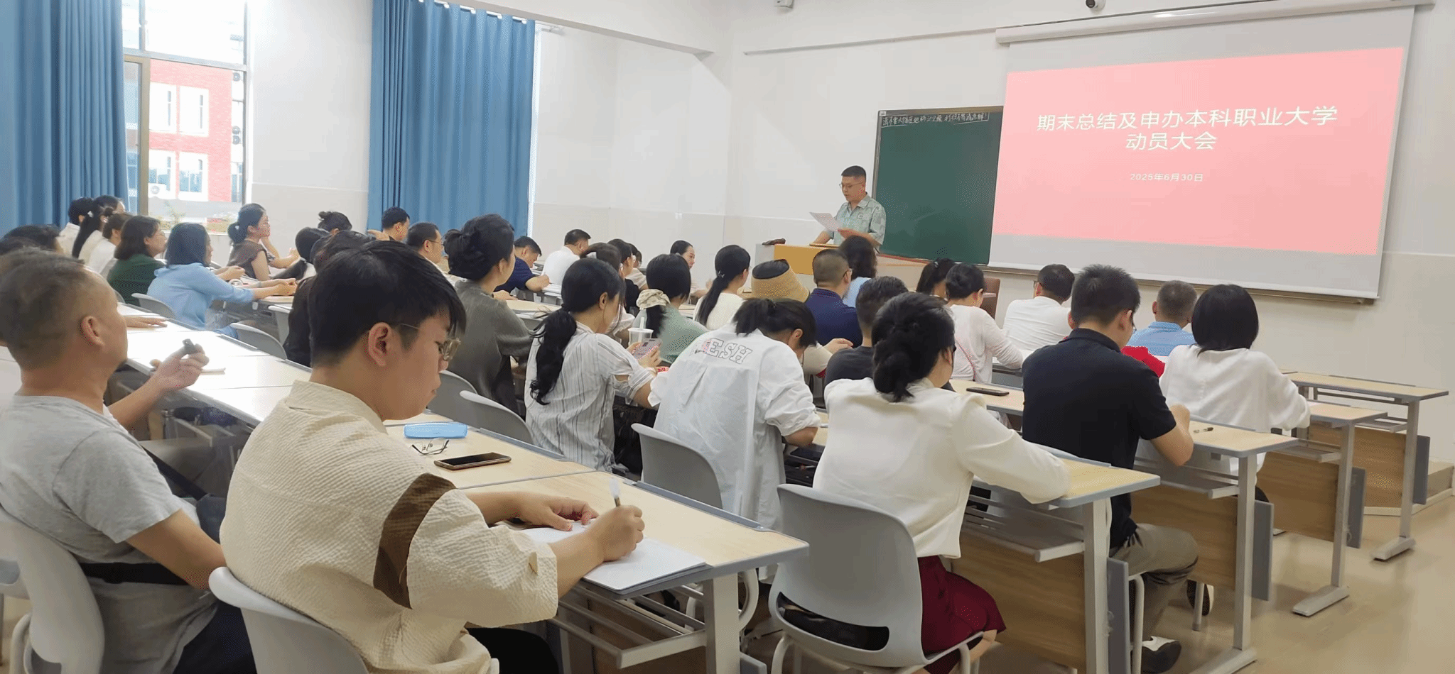 为全面总结本学期教学等工作和全力推进本科层次职业大学申办工作,6月30日,太阳集团tyc5997召开期末总结暨申办本科职业大学动员会议。