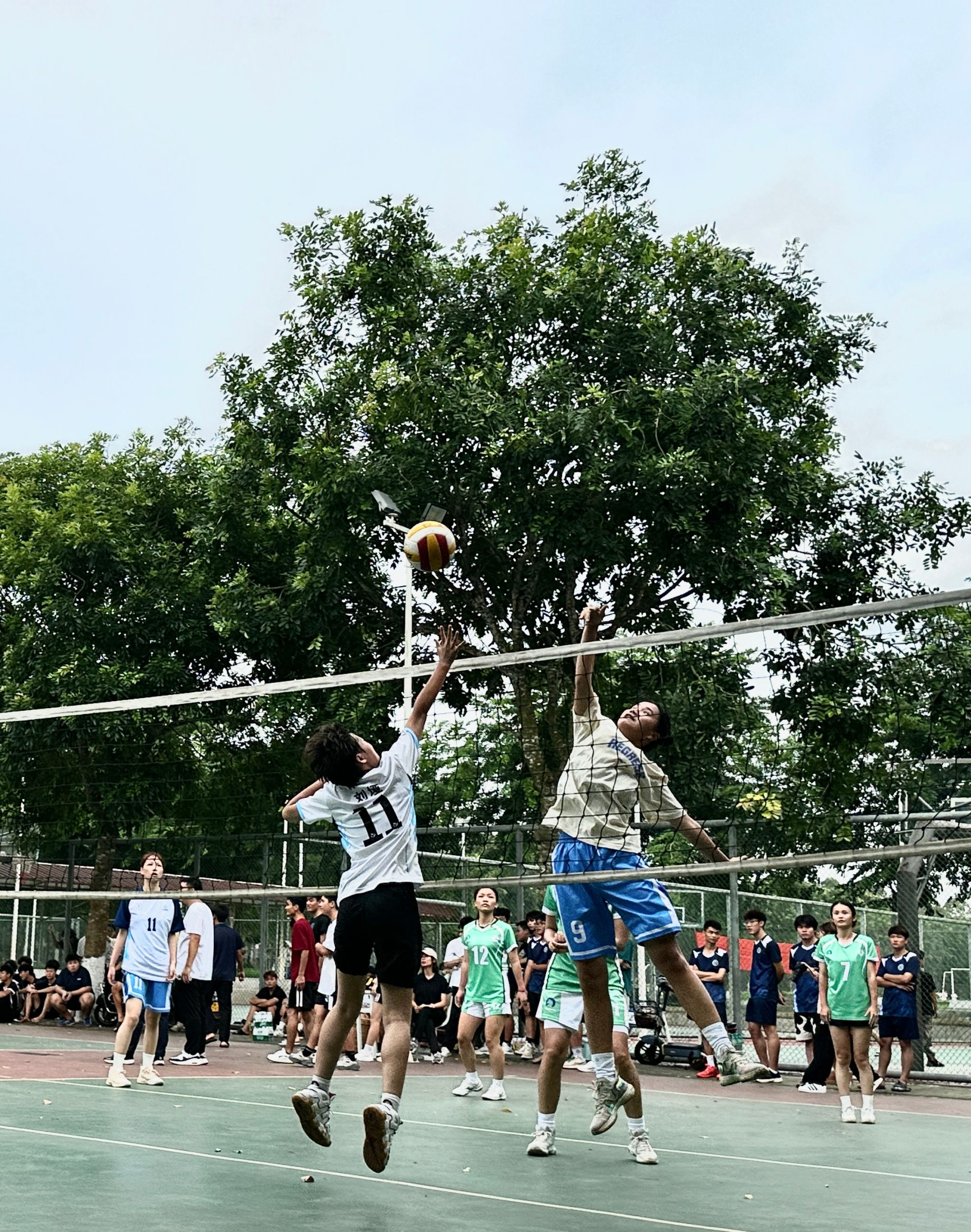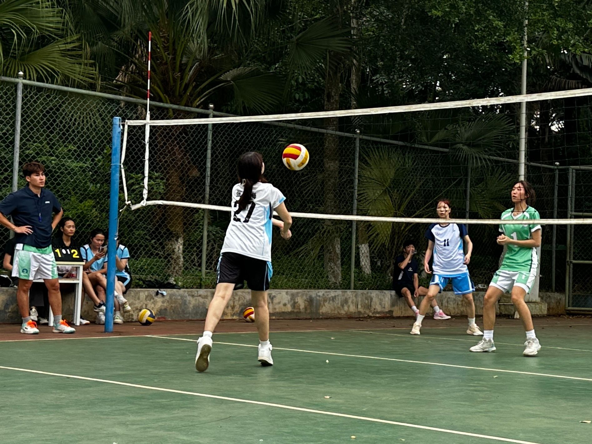 回忆赛场上,夏日炎炎,运动员们身穿统一的运动服,奋力拼搏,汗水湿透了他们的球衣,但他们的眼光中却都闪烁着青春的光芒,他们配合默契,传球都精准到位,扣杀时而势大力沉,时而灵巧到位,活力跳跃的身影在球场上奔跑.....,让比赛精彩纷呈,划出一道美丽的校园风景线。