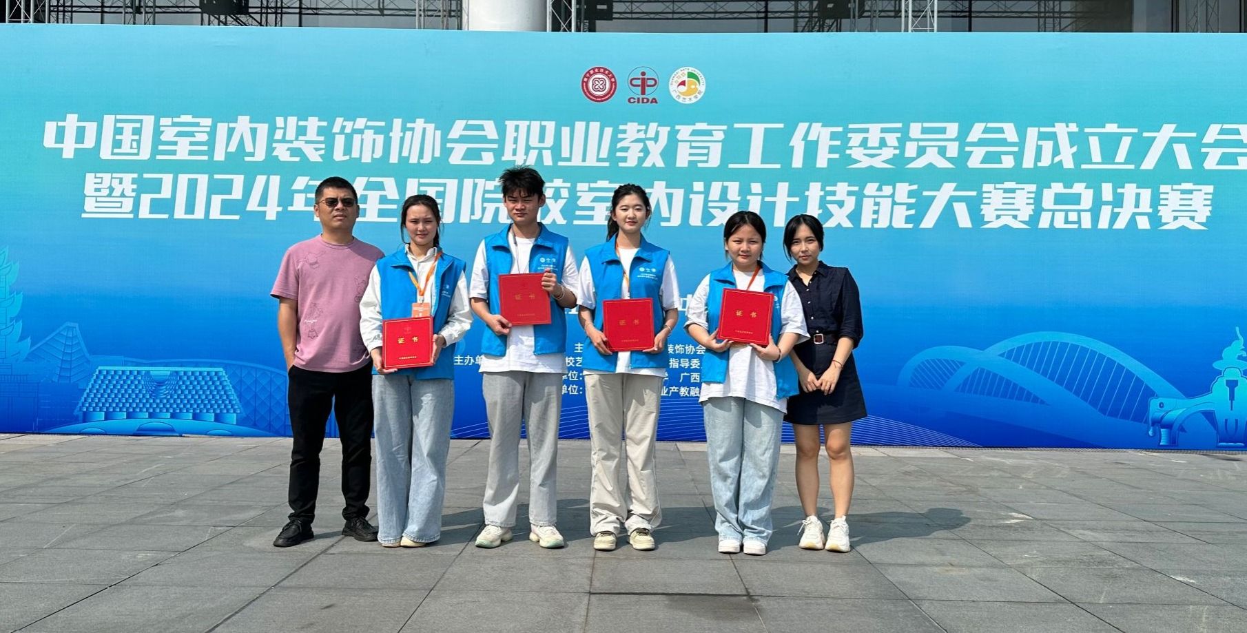 大赛由中国室内装饰协会携手教育部职业院校艺术设计类专业教学指导委员会环境艺术设计类专业委员会联合主办,南宁职业技术大学和广西艺术学院共同承办。本次大赛为学生团体赛,每支参赛队伍2名选手,设“中职组”“高职组”“本科组”和“东盟国际”四个组别,每组设定了不同的主题,重点考查参赛团队的设计基础能力、设计与表现技能和创新创意等职业综合素质和行动能力。大赛经过层层选拔,来自国内外的171支参赛队入围总决赛并争夺最终奖项。在谢二兰、谭溪鑫以及原彬、胡晓老师的悉心指导下,海经贸两个参赛团队凭借扎实的理论知识、卓越的设计才华、默契的团队合作和出色的现场表现,取得了竞赛好成绩,展现了海经贸学子良好的精神风貌。