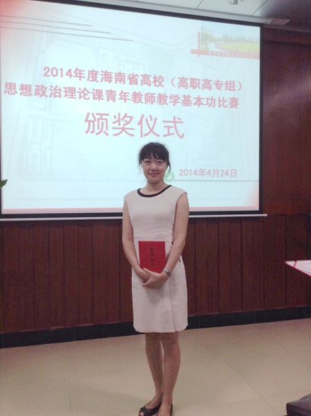 海南省教育厅举办的这次青年教师教学比赛,对加强思想政治理论课青年教师教学能力的培养、鼓励青年教师探索教学能力、不断提高教学水平具有重要的意义,为青年教师提供了展示才华的舞台。我院教师获奖,说明我院在加强思政课教学内容和教学方式的改革、提高思政课教师教学水平方面已经收到了初步的成效。