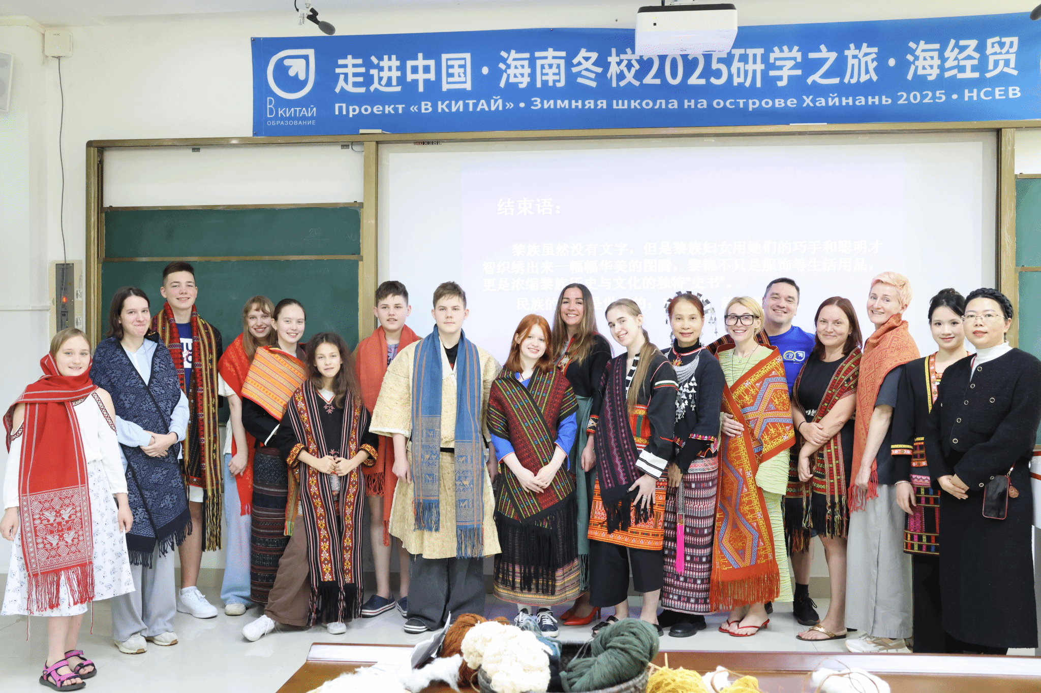 此外,国际学员们还有机会穿上海南黎族的民族服饰,亲身体验非遗技艺的神奇与美妙。他们身着色彩斑斓、图案精美的黎锦服饰,仿佛置身于海南的古老村落之中,感受着那份深厚的文化底蕴和独特的民族风情。这一环节不仅让国际学员们领略了海南非遗黎锦服饰文化的独特魅力,更促进了中外文化的交流与融合。