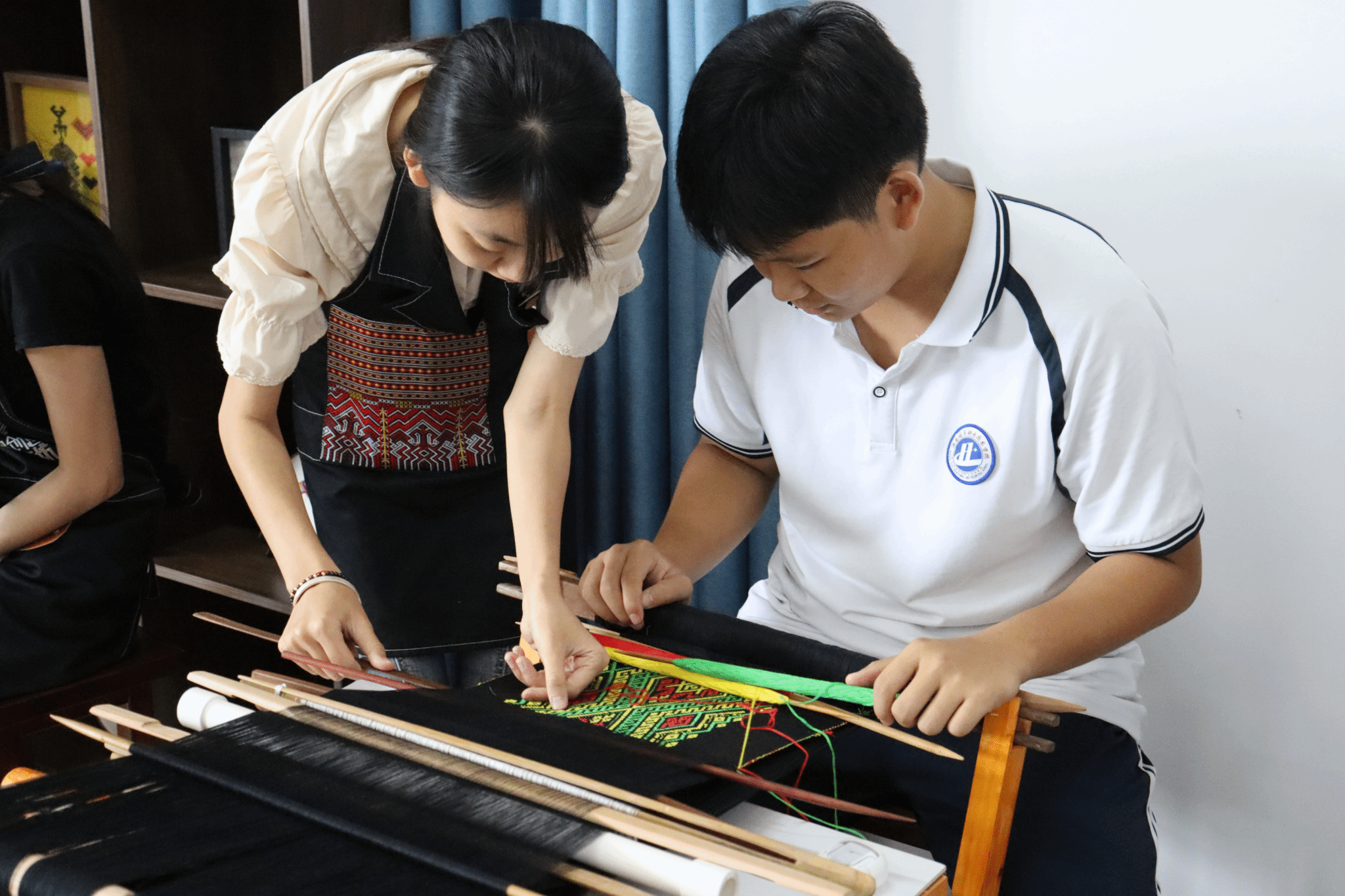 中职学生体验黎族织锦