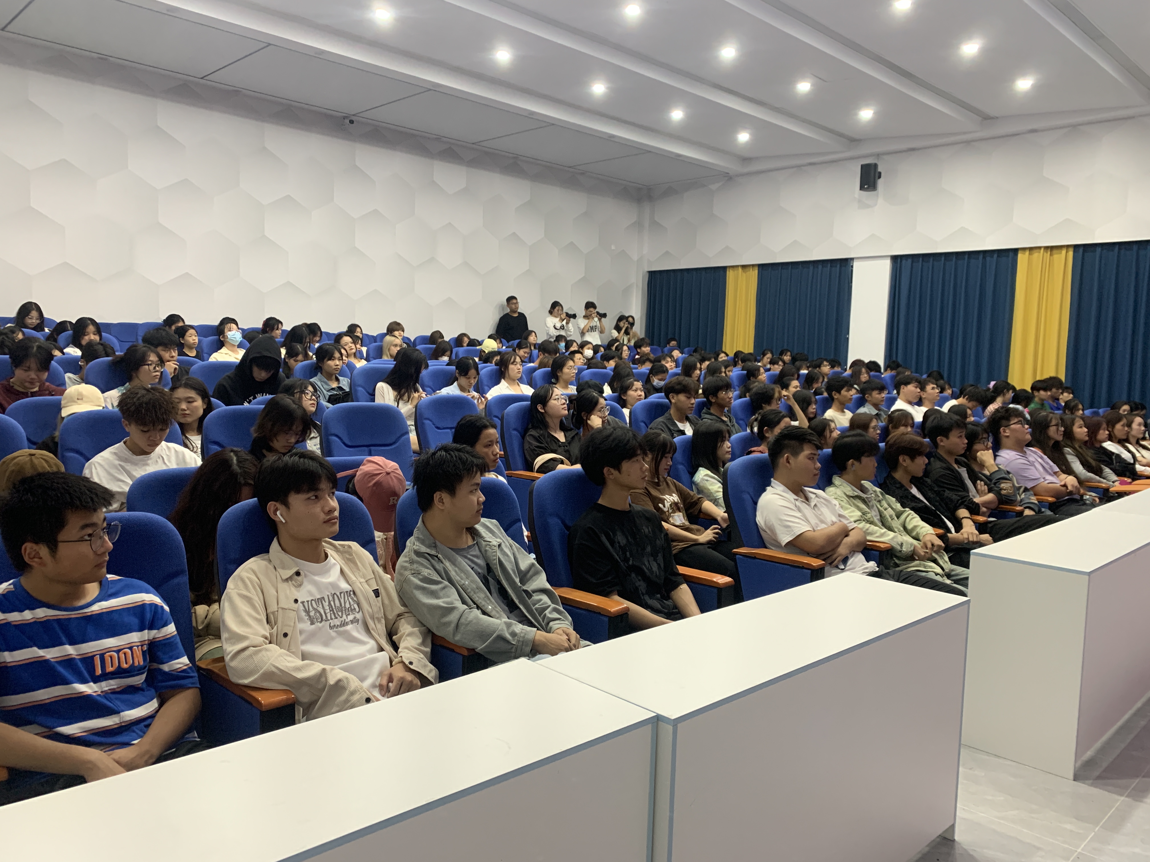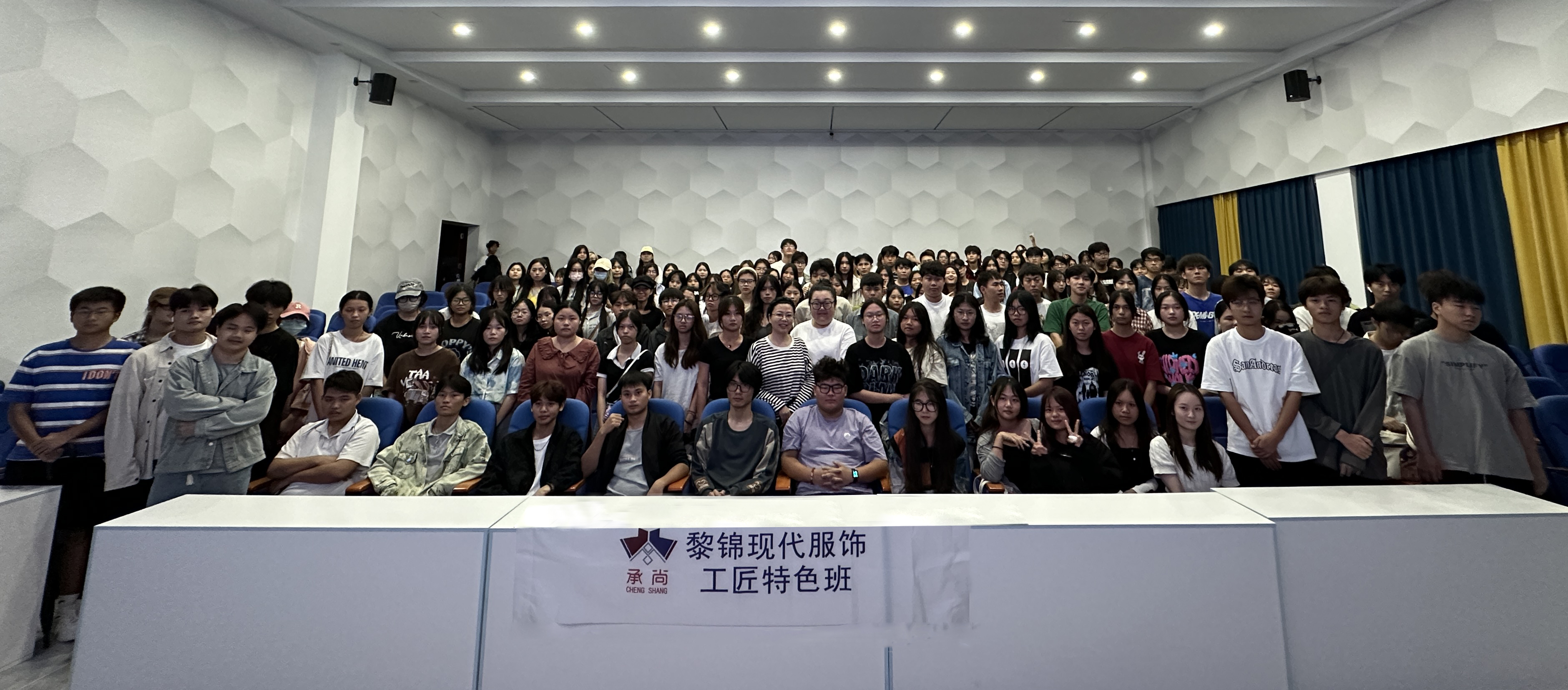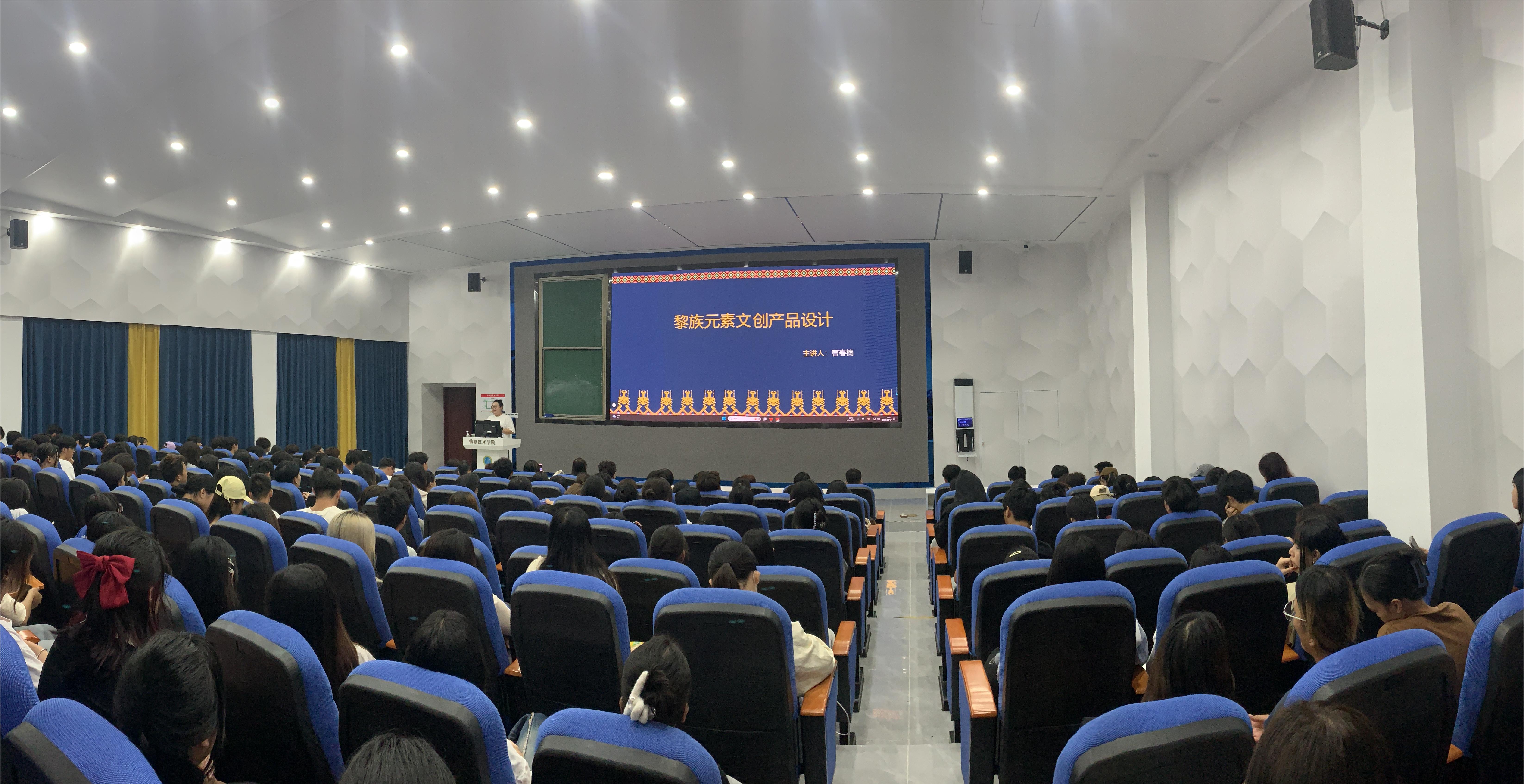 讲座从非遗文化、民族元素特征、创新设计方法、服装及饰品中的应用四个方面进行讲解,让同学们了解海南非遗文化、民族元素特征、民族元素的创新设计方法、优秀的文创产品案例等知识。