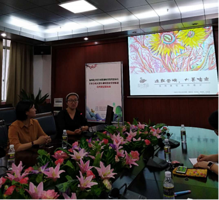 2018年5月24日下午3点在海南软件职业技术学院综合楼一楼,海南省文化艺术职业教学指导委员会全体成员及海南软件职业技术学院数码设计系部分教师参加了该活动。活动首先由海南经贸职业技术学院吴晓雯老师对该校中华优秀传统文化课程建设介绍交流,接着由三亚航空旅游职业学院宋文静教师针对该院空乘礼仪课做了精彩的报告,最后由海南软件职业技术学院刘文佳老师介绍该院创新创业教学方面取得的成果。