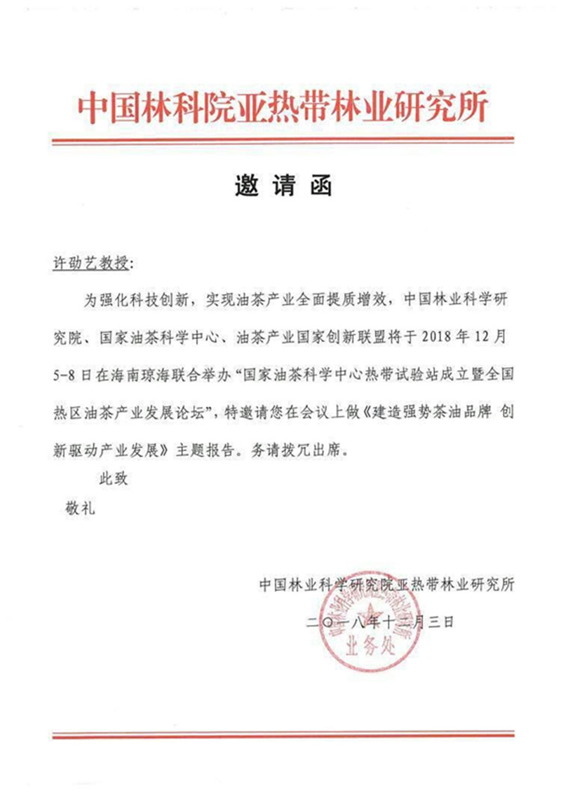 (本院讯 党政办报道)本月7日上午,在海南博鳌举行的全国热区油茶产业发展论坛上,我校太阳集团tyc5997许劭艺院长应邀做了《建造强势油茶品牌 创新驱动产业发展》的主题报告。