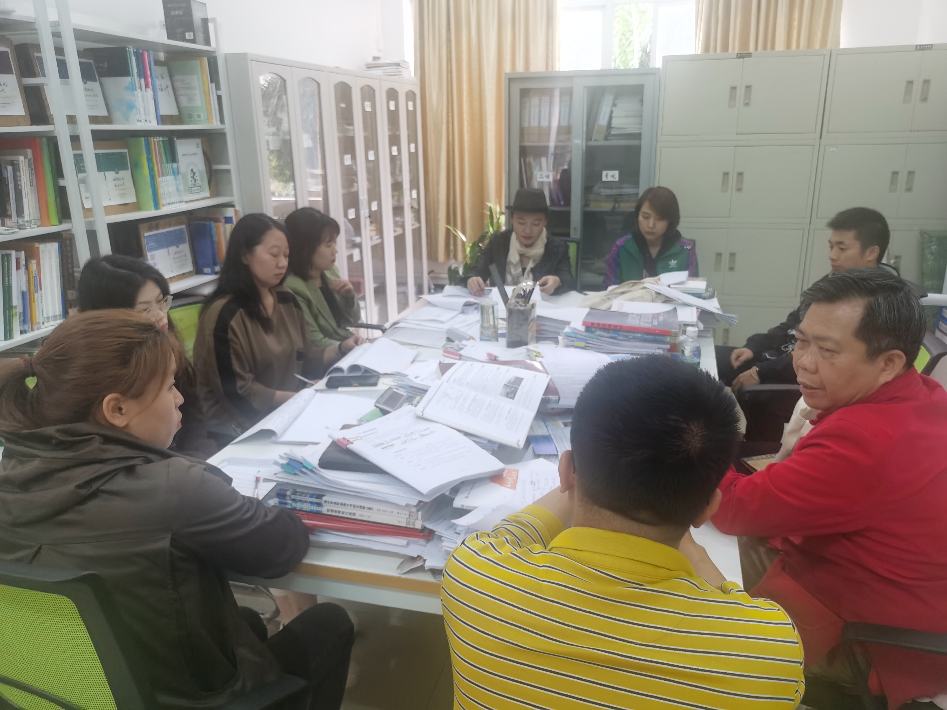 》进行研究和探讨,从建设基础、组群逻辑、建设目标与思路、主要举措、预期效果、文化创意与策划专业群建设进度、文化创意与策划专业群经费预算七个方面进行沟通交流。