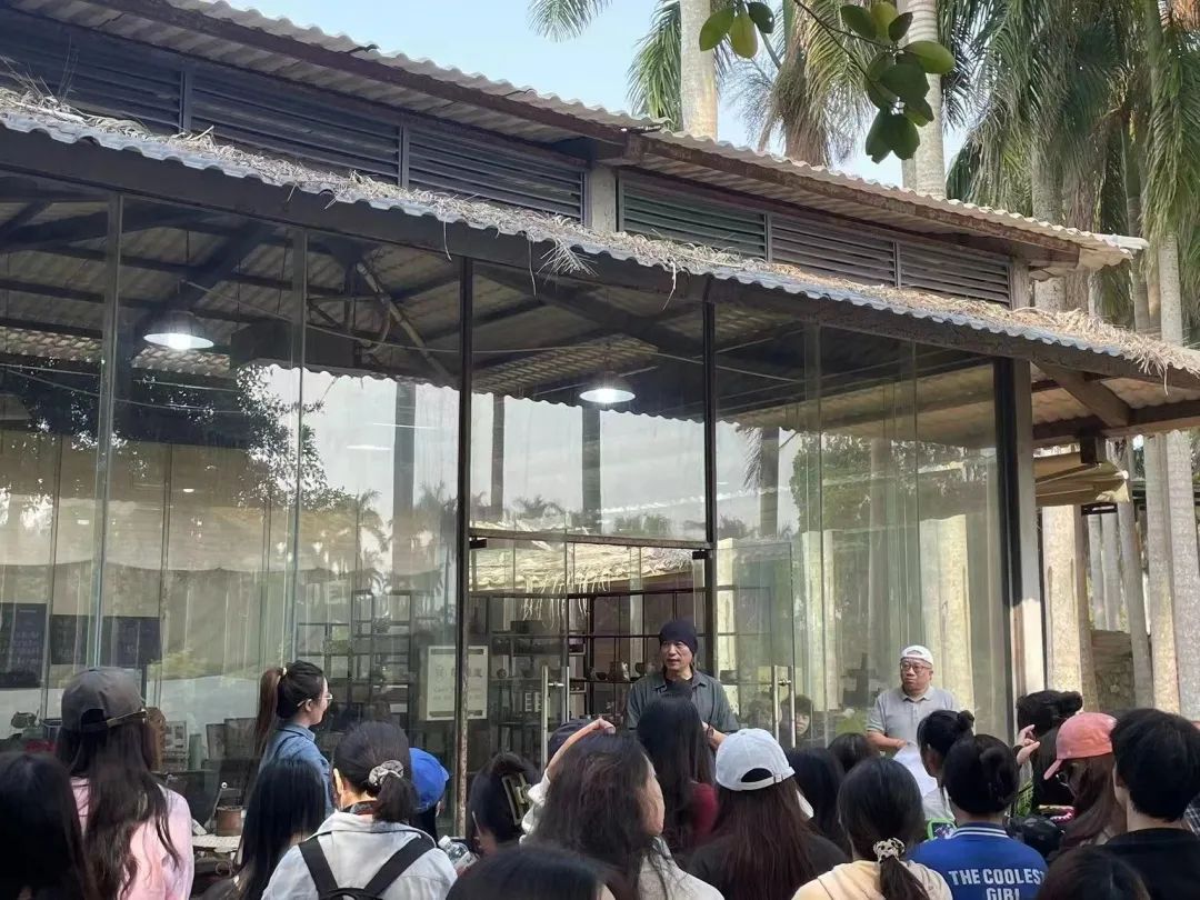 首先,由陶艺园主理人李波先生为学生讲解海南古陶文化,并参观掩映在林木之中的五孔仓式窑。其次由联合国教科文组织国际陶艺学会(IAC)会员王胜利老师在现场讲述海南陶艺发展新思路,希望将来可以进一步加强校企合作,共同建设适合本专业学生特征的课程形式,激发学生在传统陶艺上的创新思维,研制出真正有海南文化特色的陶艺作品。再次李波老师以视频的形式为学生展现整个柴烧过程,王胜利老师进行陶器成型演示,并讲授陶艺成型制作要点与注意事项等。