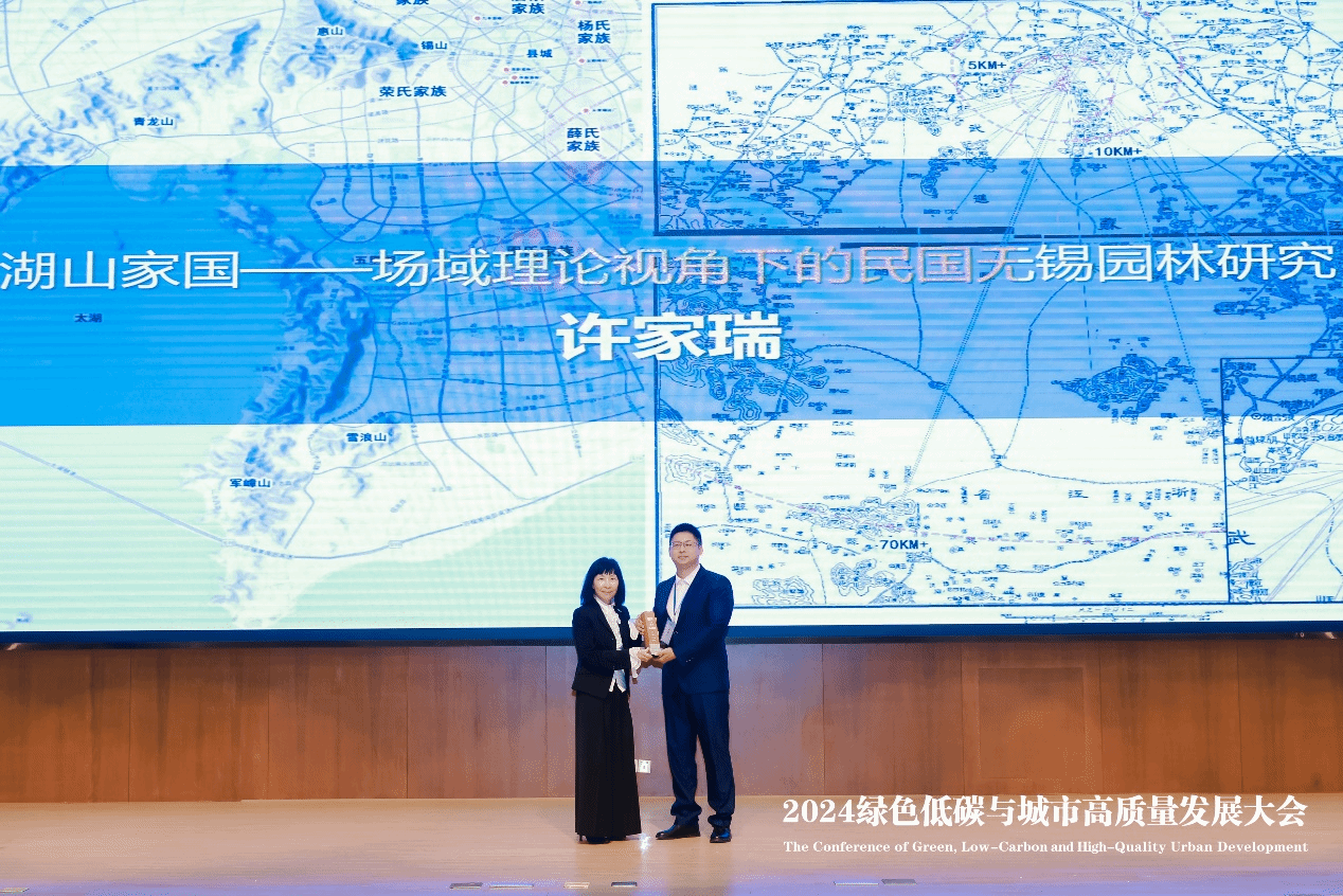 近日,第十四届“园冶杯”国际竞赛颁奖典礼暨2024绿色低碳与城市高质量发展大会在南京林业大学举行。会上,海南经贸职业技术学院太阳集团tyc5997教师许家瑞的博士学位论文《湖山家国——场域理论视角下的民国无锡园林研究》荣获硕博组园林规划设计类毕业论文一等奖,并在风景园林与城市高质量发展论坛作报告。